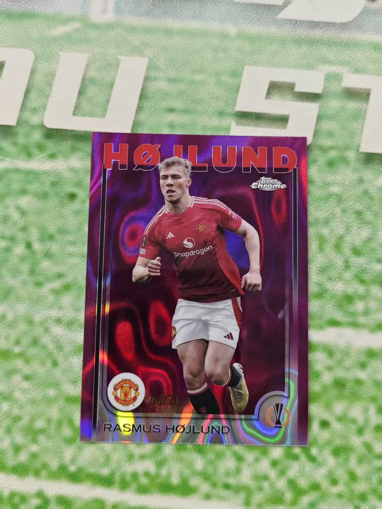 2025 Topps chrome RASMUS HOJLUND TC 欧冠 英超 曼联 拉斯穆斯·霍伊伦 紫熔岩折 75编 卡品如图 小吃豆