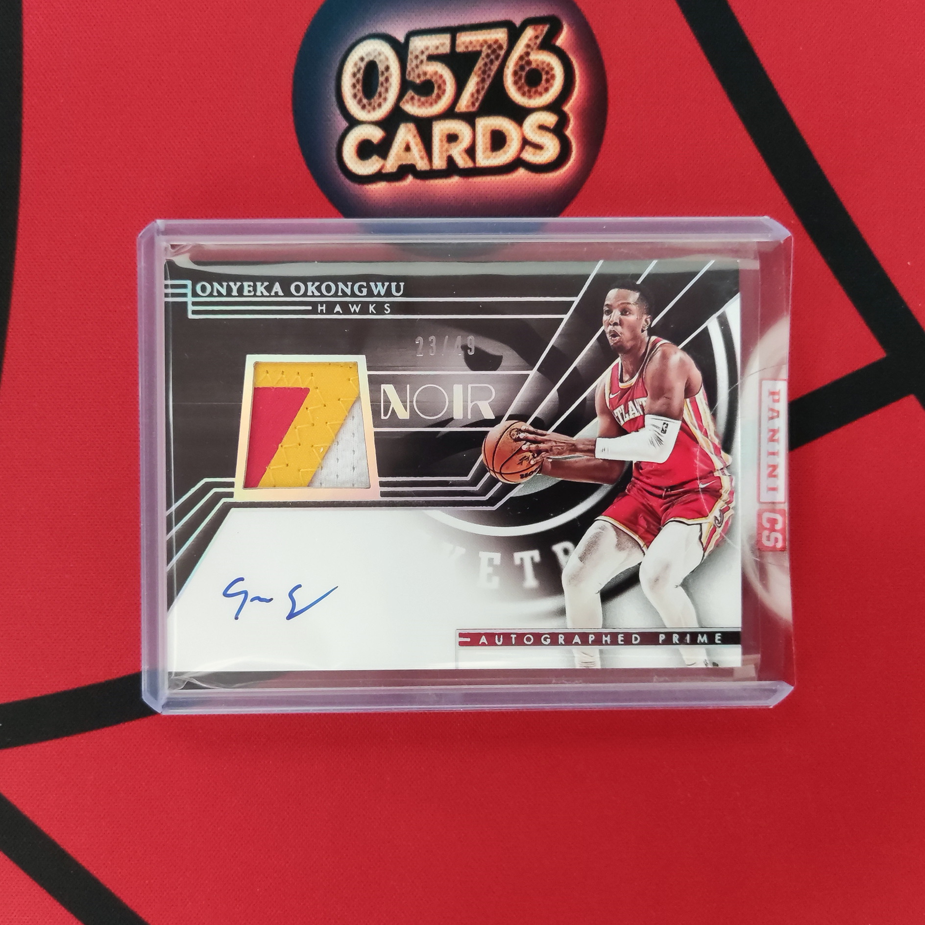 2023-24 Panini Noir Onyeka Okongwu 奥涅卡 奥孔古 老鹰 B站球王 49编 彩色版 亲穿 三色 切割 球衣 签字卡 卡签 交换回 原封夹 微白 23/49【零五七六】