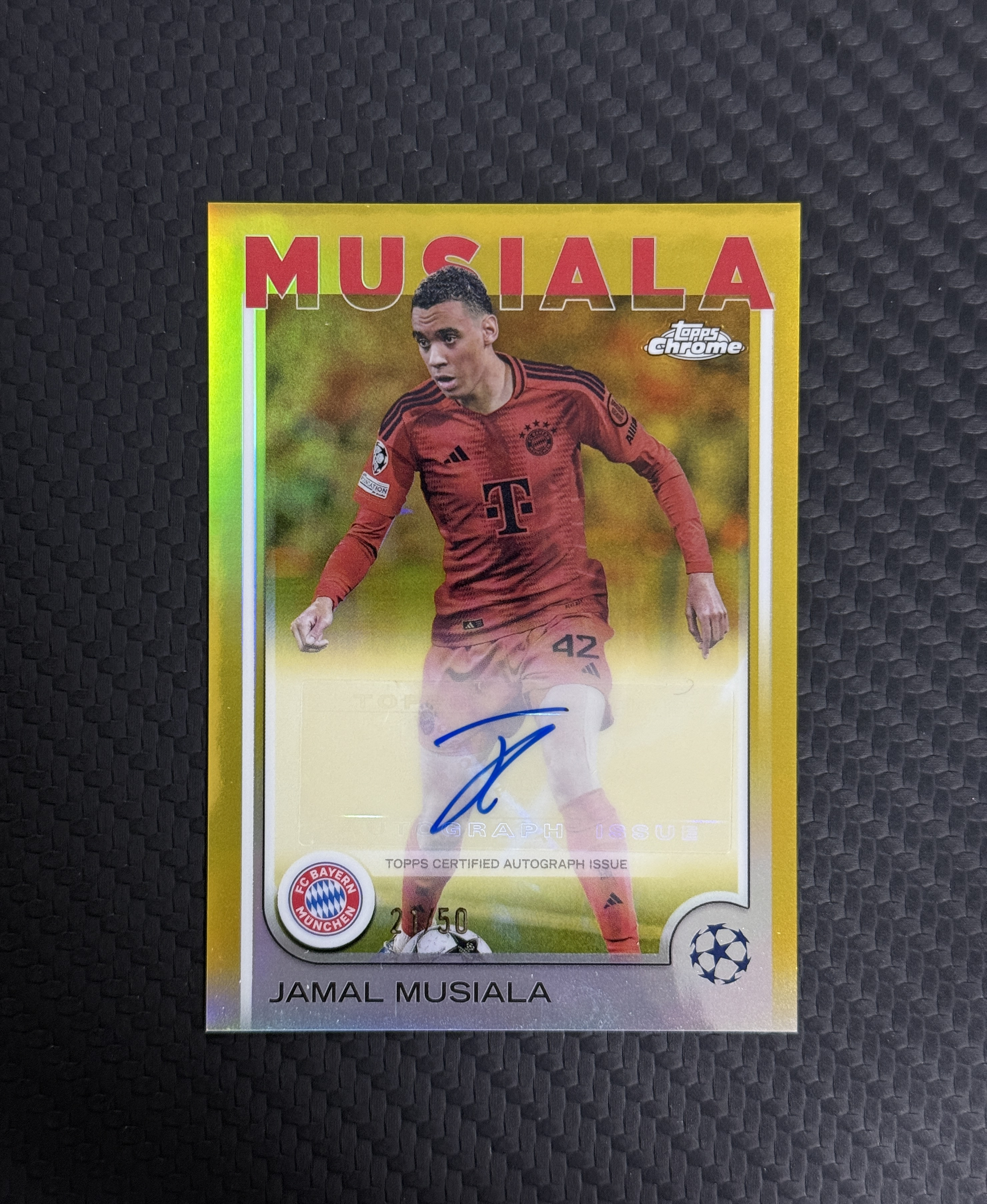 2024-25 Topps Chrome Jamal Musiala 【包来拍卖】欧冠 TC 拜仁慕尼黑 小鹿 贾马尔 穆西亚拉 穆夏拉 金折 21/50编 签字 贴签 完美墨迹 卡品如图 格厕