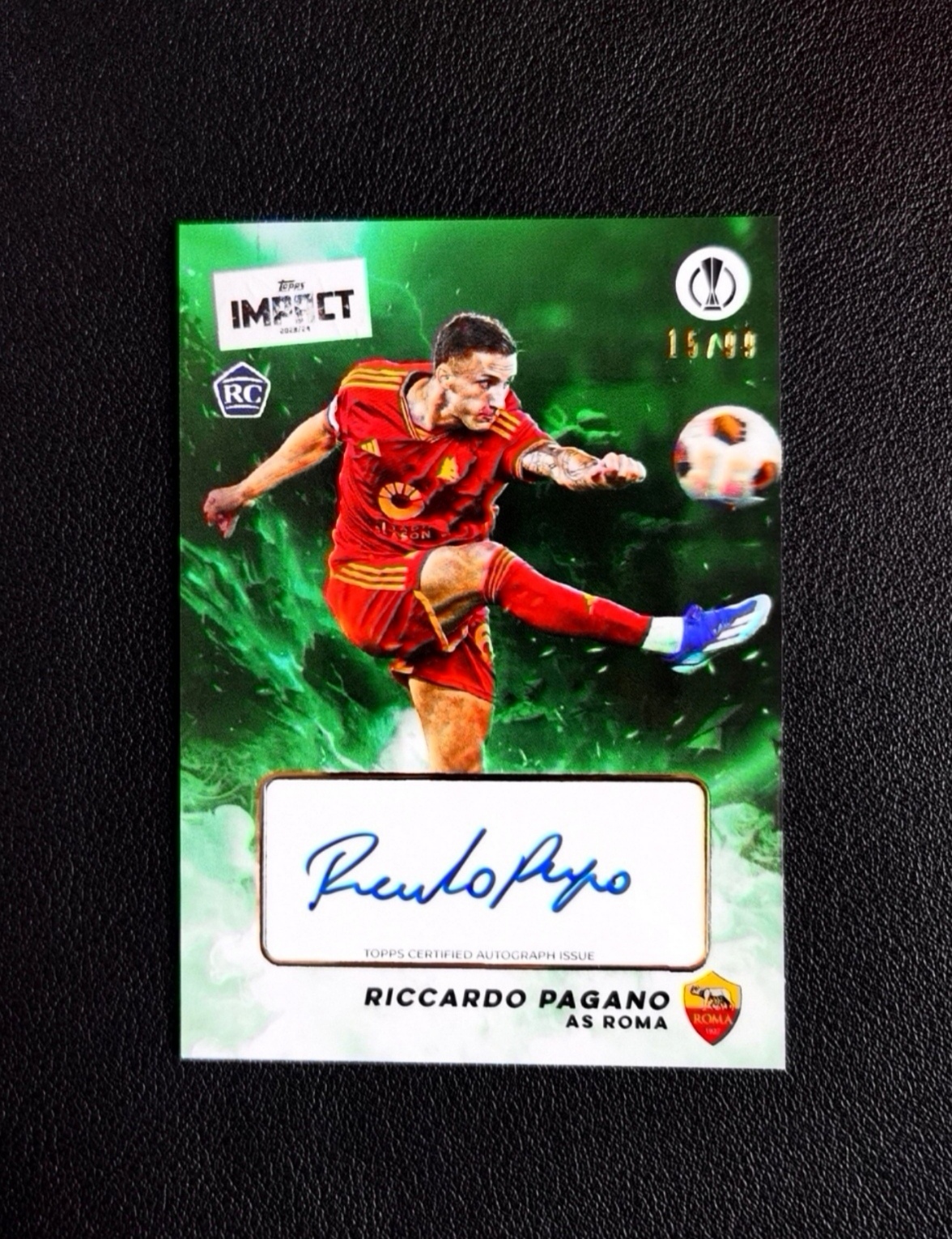 2023-24 Topps Impact Riccardo Pagano RC 欧冠冲击盒 罗马 新秀RC 里卡多 帕加诺 99编 签字 绿折 完美签 潜力中场 实卡精美 收藏必备【K5】