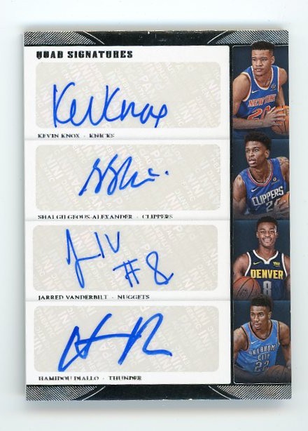 2018-19 Panini Dominion Kevin Knox/Shai Gilgeous-Alexander/Jarred Vanderbilt/Hamidou Diallo Rookie Quad Auto #‘ed 11/25