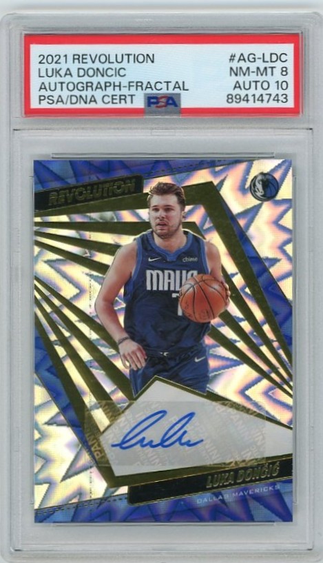 2021-22 Panini Revolution Basketball Luka Doncic Autograph-Fractal Auto PSA 8 Auto 10