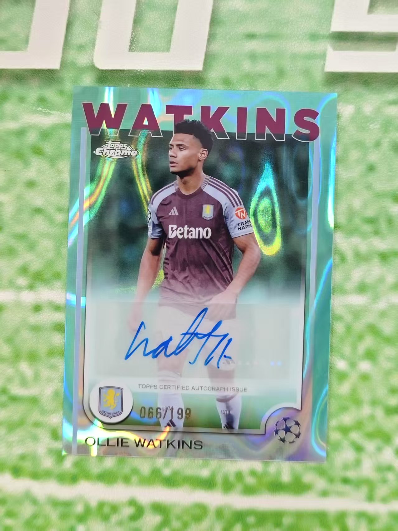 2025 Topps Chrome Ollie Watkins TC 欧冠 英超 阿斯顿维拉 沃特金斯 签字 青熔岩折 199编 卡品如图 弘老板