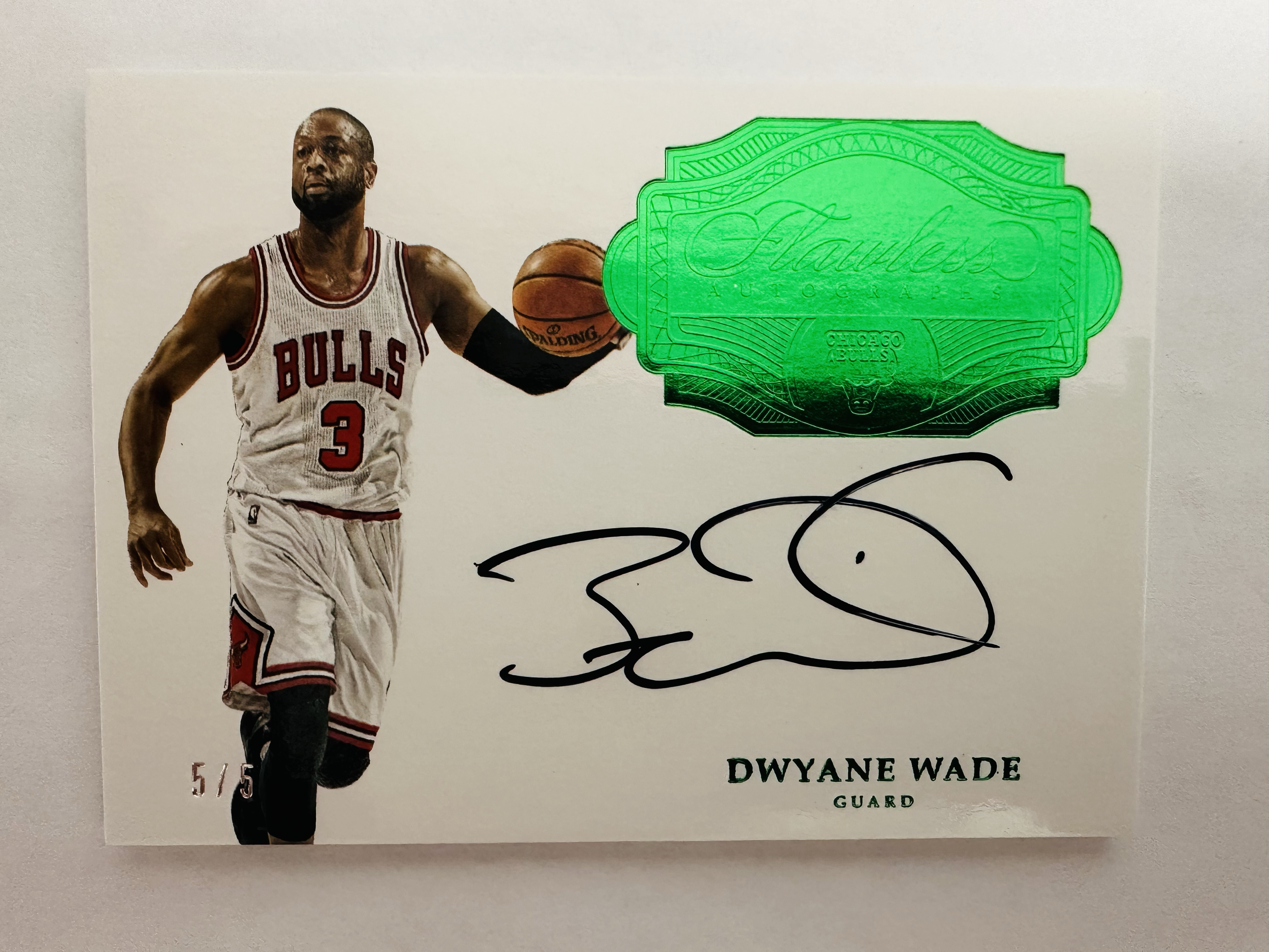 2016-17 Panini Flawless Dwyane Wade 热火 公牛 名宿 德维恩 韦德 闪电侠 手提系列 5/5编 尾编 超低编 绿平行 签字 卡签 总冠军 卡品完美如图
