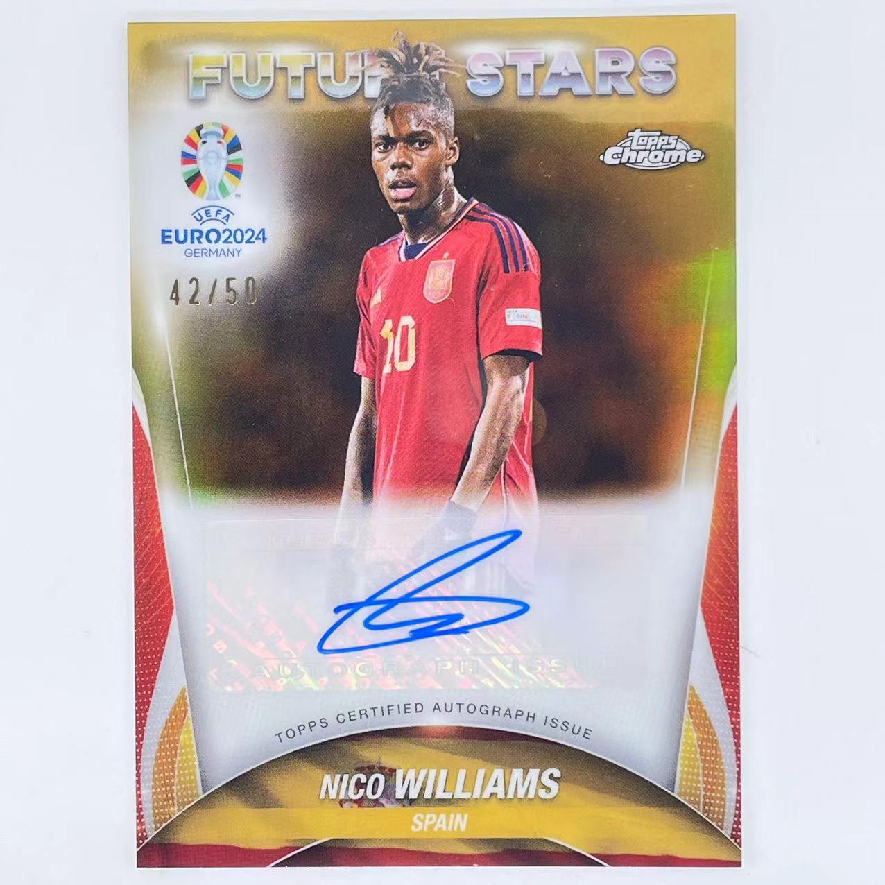L 2024 Topps Euro Chrome Nico Williams 尼科 威廉姆斯 西班牙 毕尔巴鄂竞技 欧洲杯 TC 50编 签字 签名 金折 折射 未来之星 Future Stars 轻印如图 众孚阿杰@4