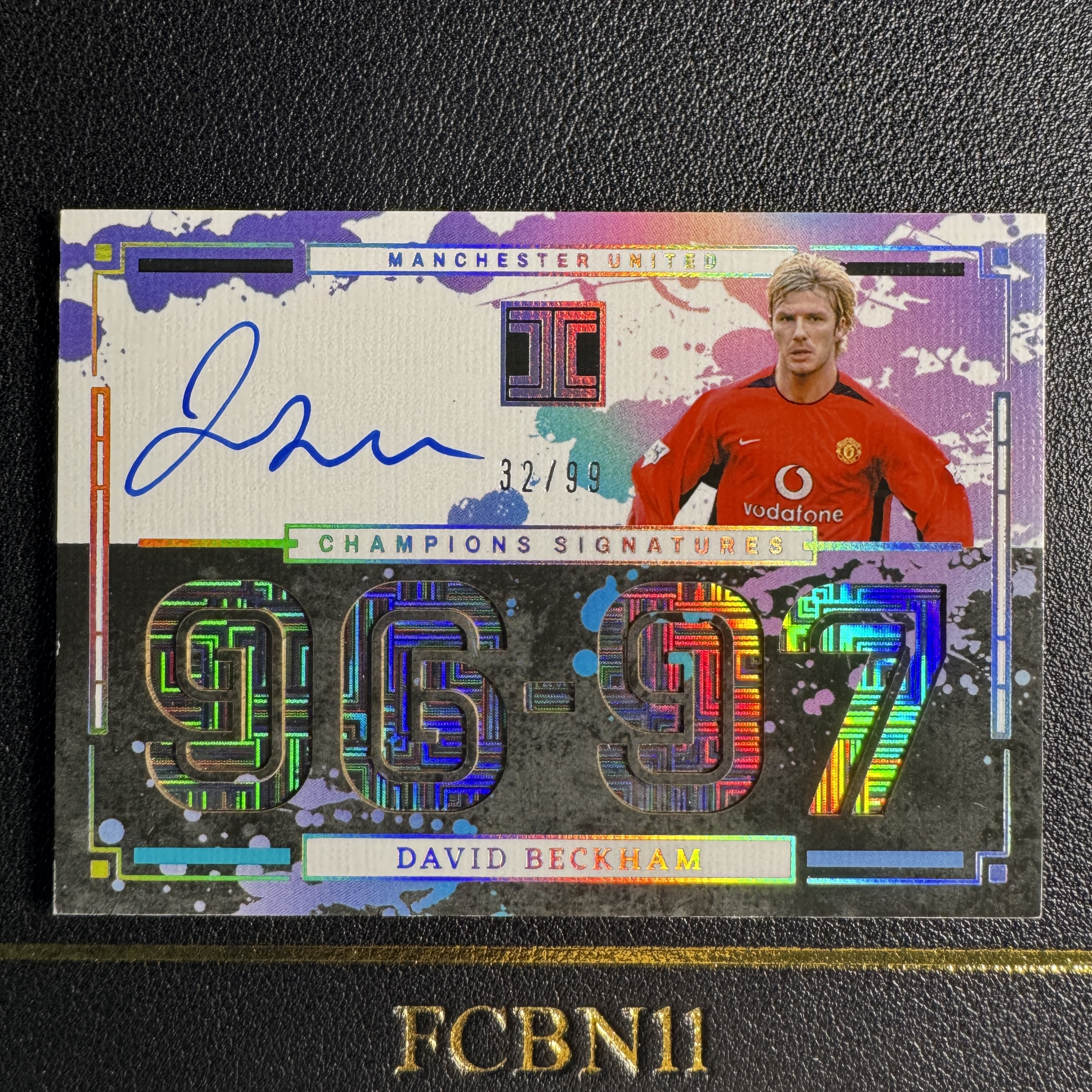 【FCB拍卖】2024-25 PANINI IMPECCABLE DAVID BECKHAM 贝克汉姆 99编 签字 卡签 数据 单一平行 冠军签 CHAMPIONS 96-97赛季 曼联 英格兰{WJM18}FCBN11 英超小真金 瑕疵