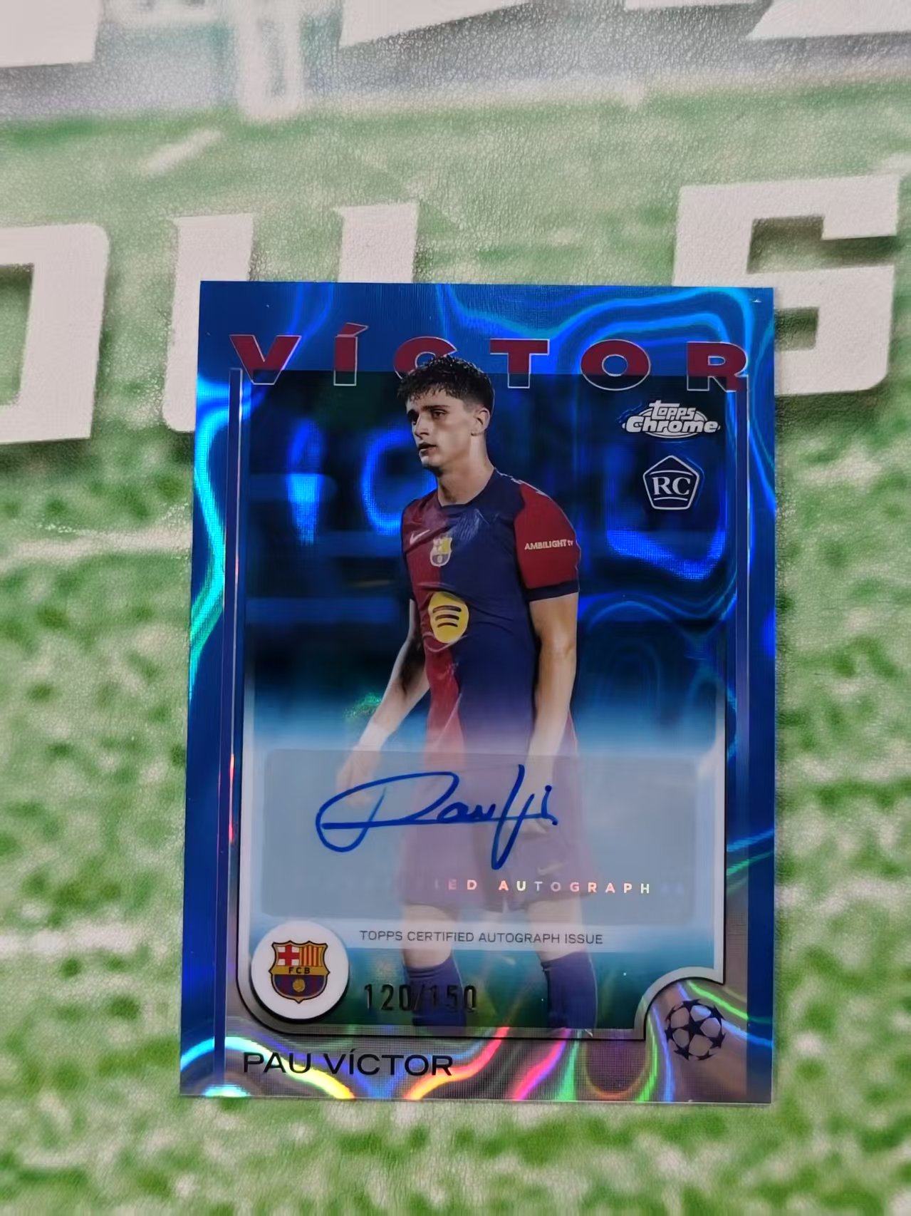 2025 Topps Chrome PAU VICTOR TC 欧冠 西甲 巴塞罗那 新秀 rc 保 维克托 签字 蓝熔岩折 150编 卡品如图 ccc