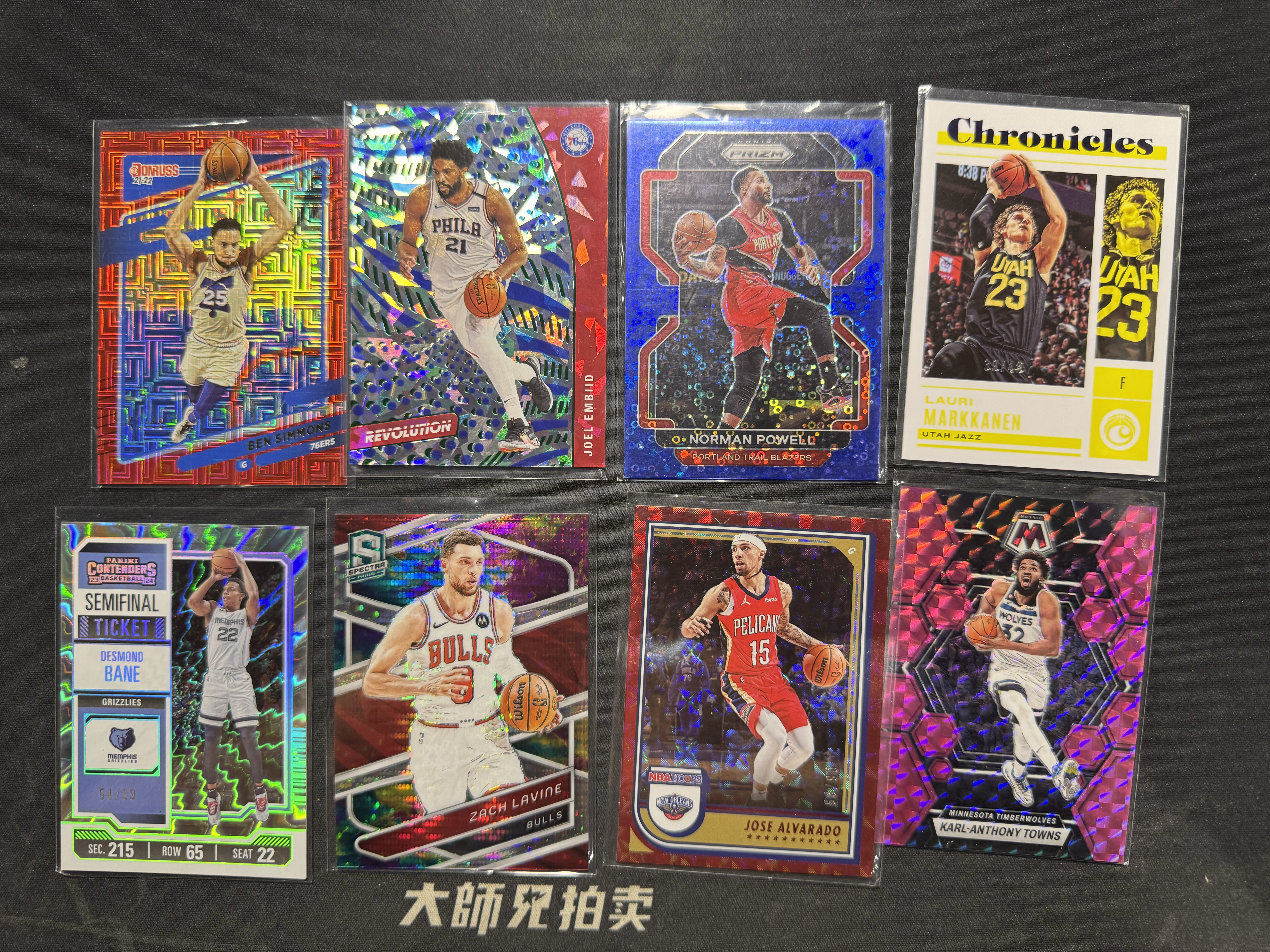 【大师兄拍卖】panini 多系列 西蒙斯 恩比德 鲍威尔 马尔卡宁 贝恩 拉文 唐斯 阿尔瓦拉多 带编 折射 8张 lot 打包 细节看图 -洁瑞-