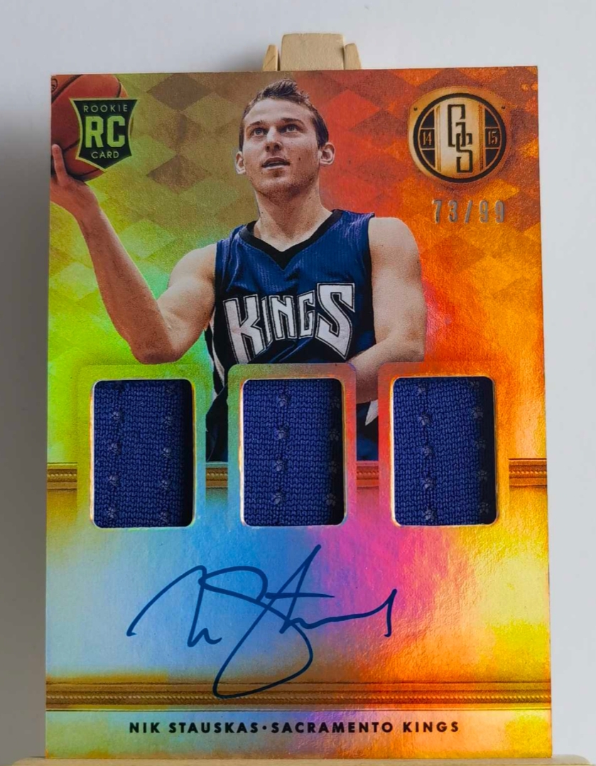 2014-15 Panini Gold Standard Nik Stauskas 金砖 尼克施陶斯卡斯 99编 RJA RC新秀 三窗球衣切割 卡签签字 折射 国王 手提 imm 数据