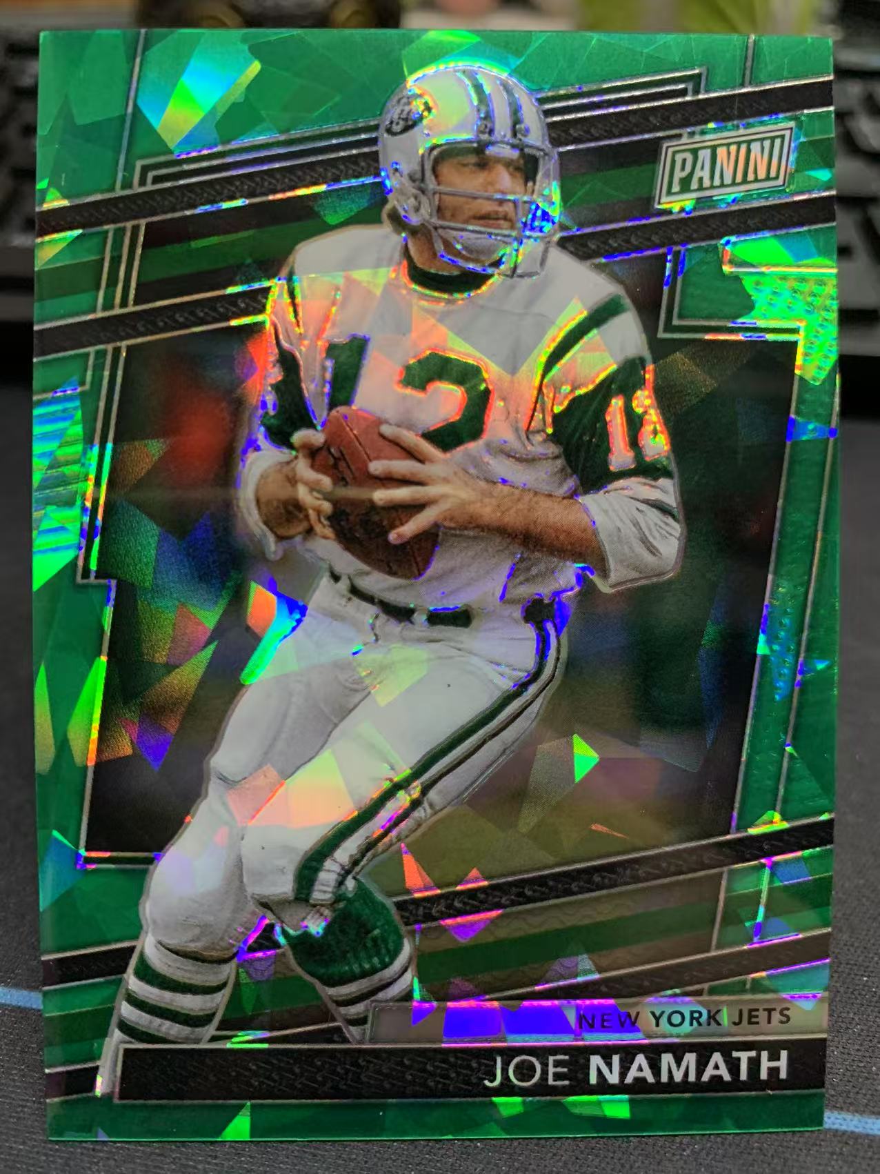 2024 Panini THE NATIONAL Joe Namath 帕尼尼 国展 展会 橄榄球 纽约喷气机 乔纳马斯 乔纳玛什 #99编 绿折 碎冰