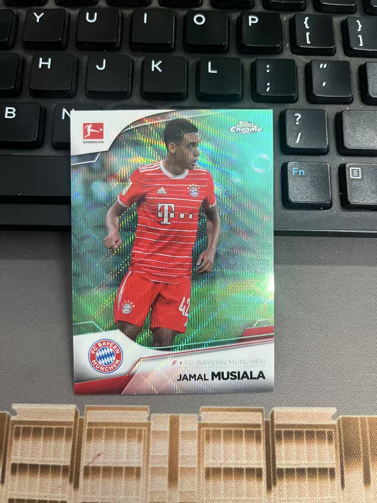 2023 Topps Chrome Jamal Musiala 【梓洋代卖】德甲 拜仁慕尼黑 贾马尔 穆西亚拉 穆夏拉 008/275编 青波纹折 折射 卡品如图 洋洋