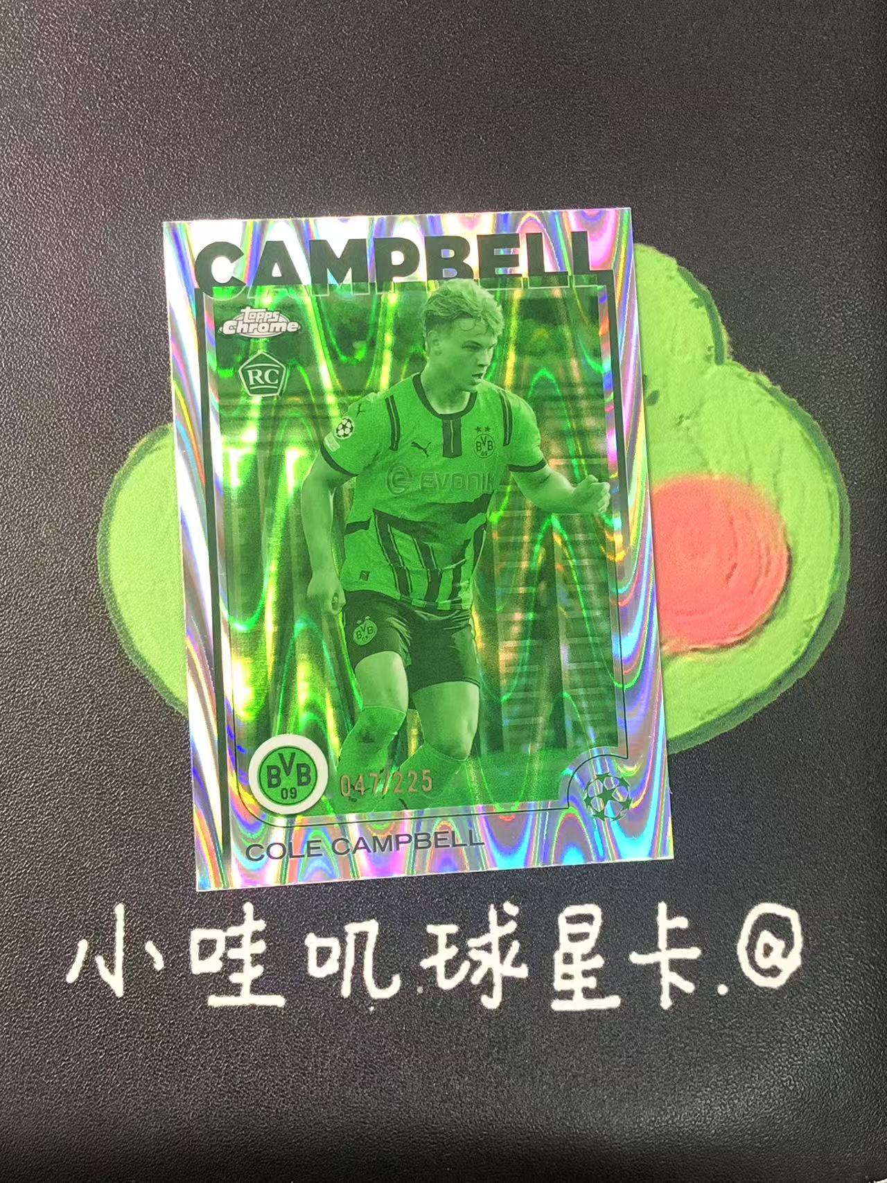 2024-25 Topps 【ZYP代拍】 COLE CAMPBELL 欧冠 CHROME 多特蒙德 坎贝尔 新秀 RC 225编 微瑕如图 收藏必备 老舅