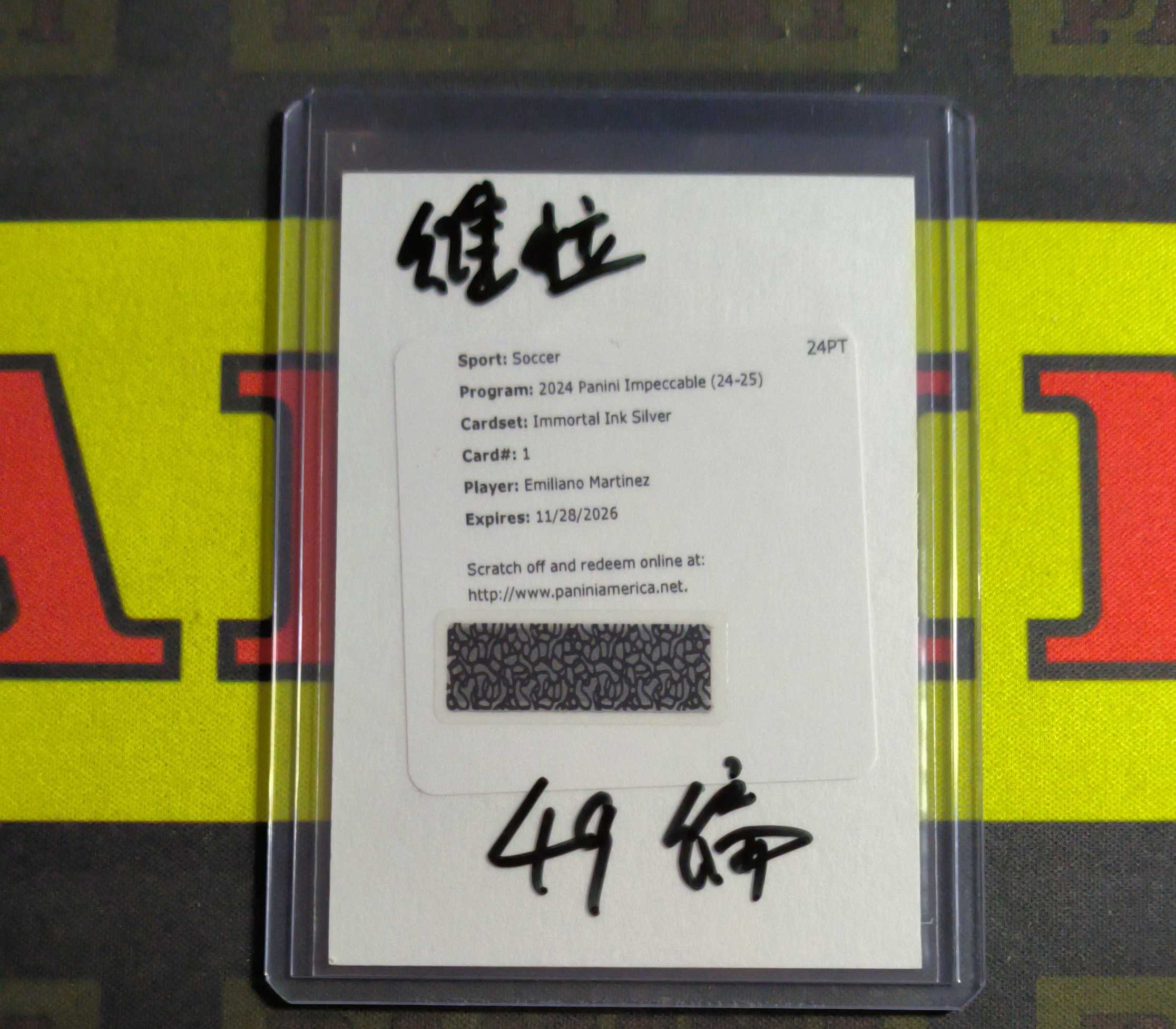 2024-25 Panini Impeccable Emiliano Martínez 英超小真金 阿斯顿维拉 圣马丁 埃米利亚诺 马丁内斯 闪版 ink签字 49编 卡签 交换板(yby)