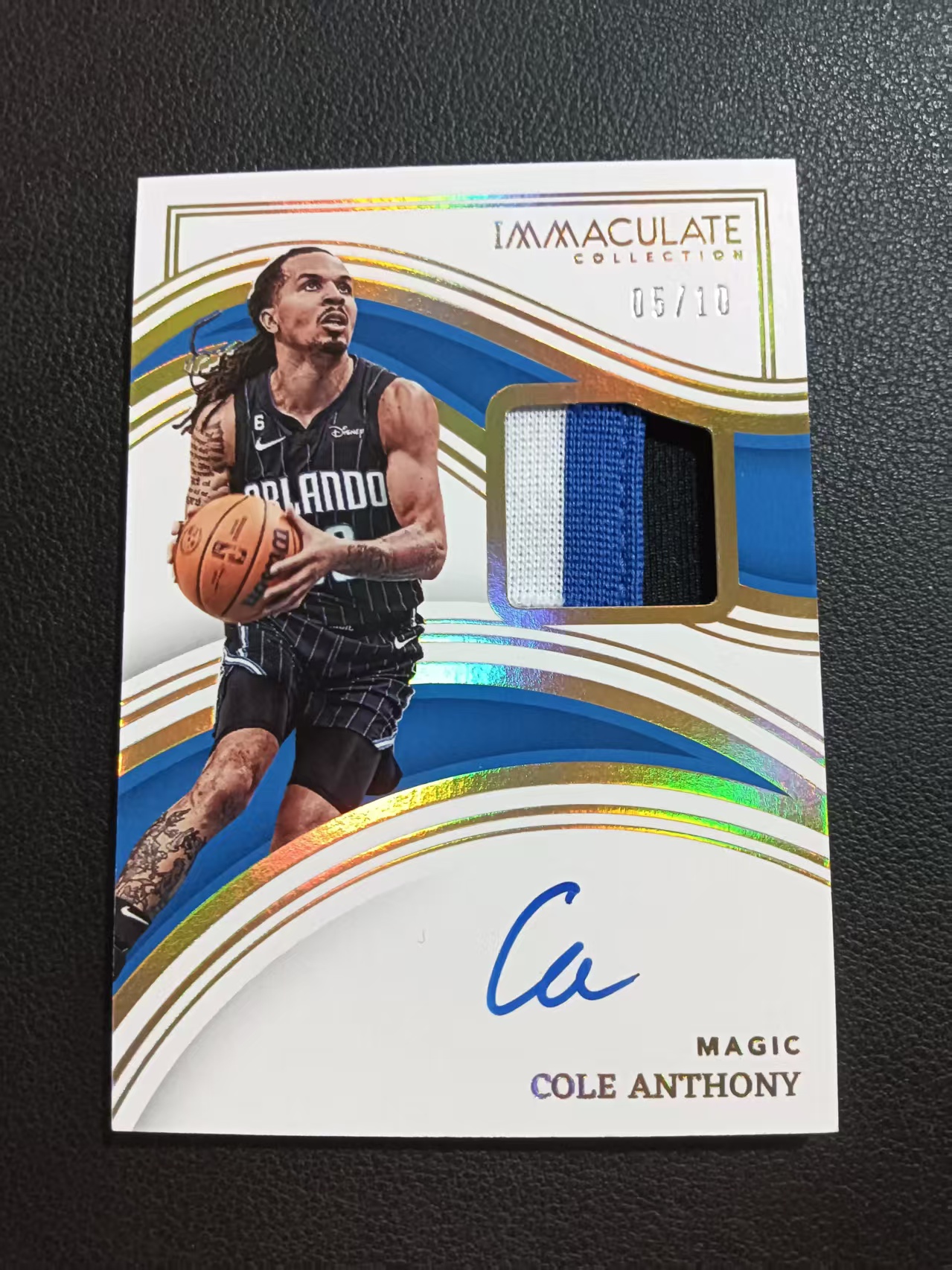 2022-23 Panini Immaculate Cole Anthony 爱咪咪 魔术 科尔 安东尼 金版 三色球衣实物 暴力切割 PA 签字 卡签 05/10编 卡品完美 如图 深情