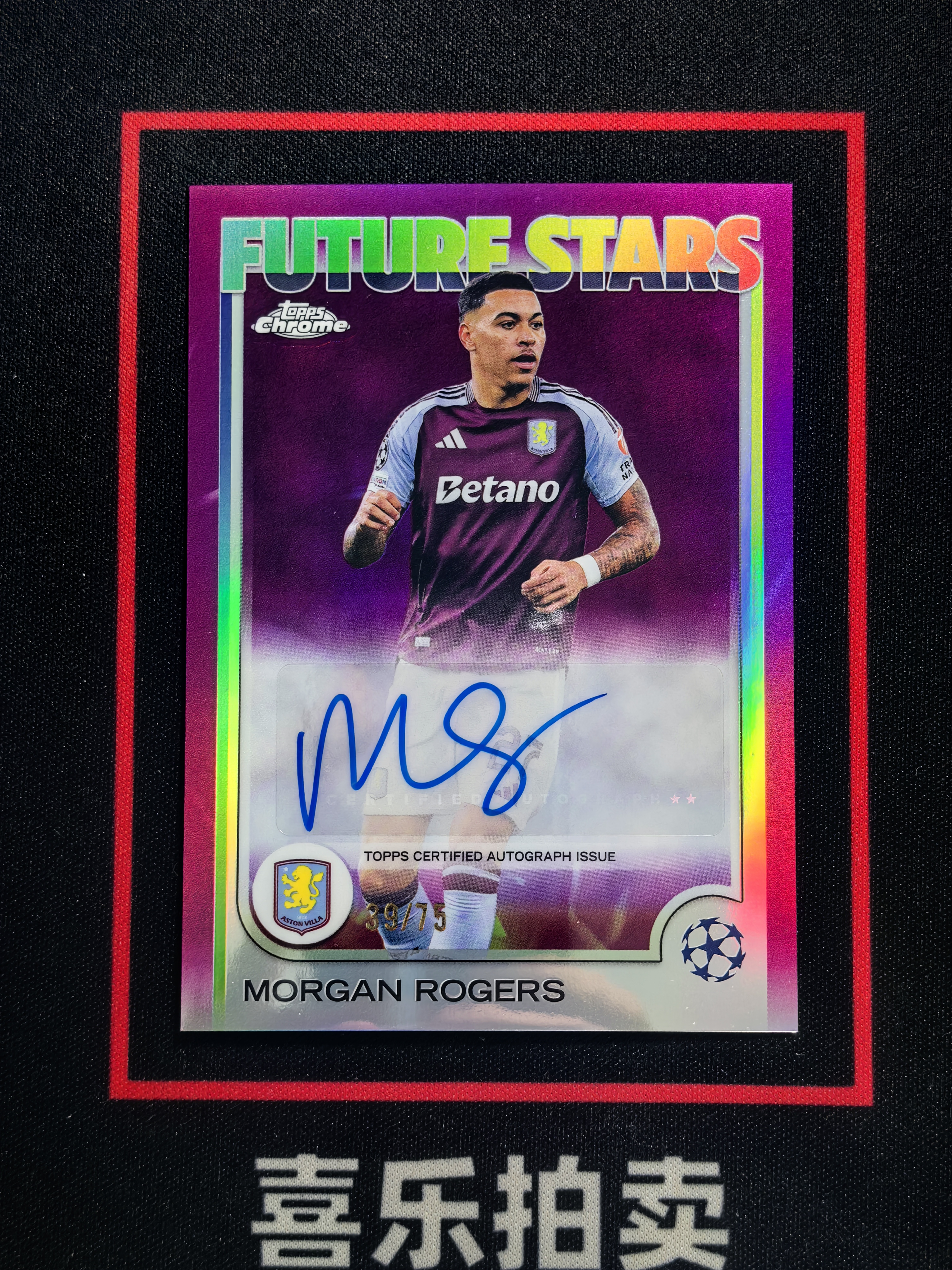 2025 Topps Chrome Morgan Rogers 欧冠 欧战TC 新秀RC 阿斯顿维拉 摩根 罗杰斯 39/75编 签字 未来之星 特卡 紫折 折射 潜力无限 卡品如图 ltx