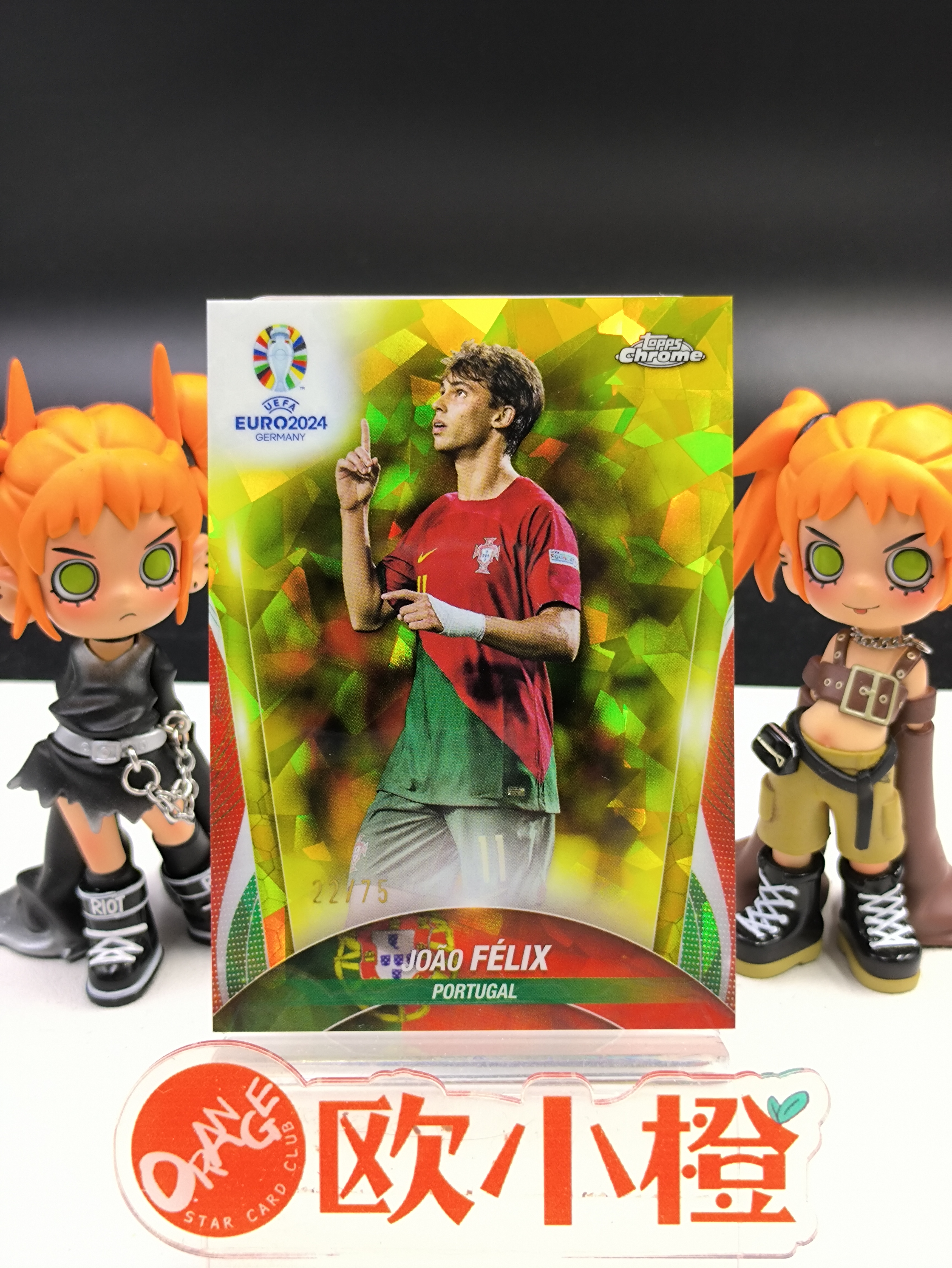 2024 【欧小橙急速拍】 Topps Chrome Joao Felix 欧洲杯TC 蓝宝石 葡萄牙 菲利克斯 22/75编 黄碎冰折 变化版 细节如图 收藏必备棍-建设