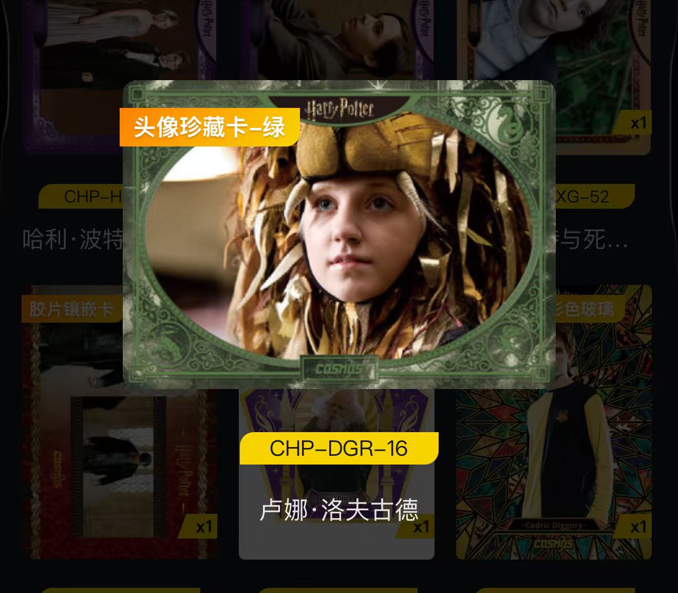 卡卡沃 HARRY POTTER COSMOS 哈利波特官方收藏卡 头像珍藏卡 卢娜 洛夫古德 25编 绿 关键词 哈利 马尔福 少爷 卡品如图 顺丰到付