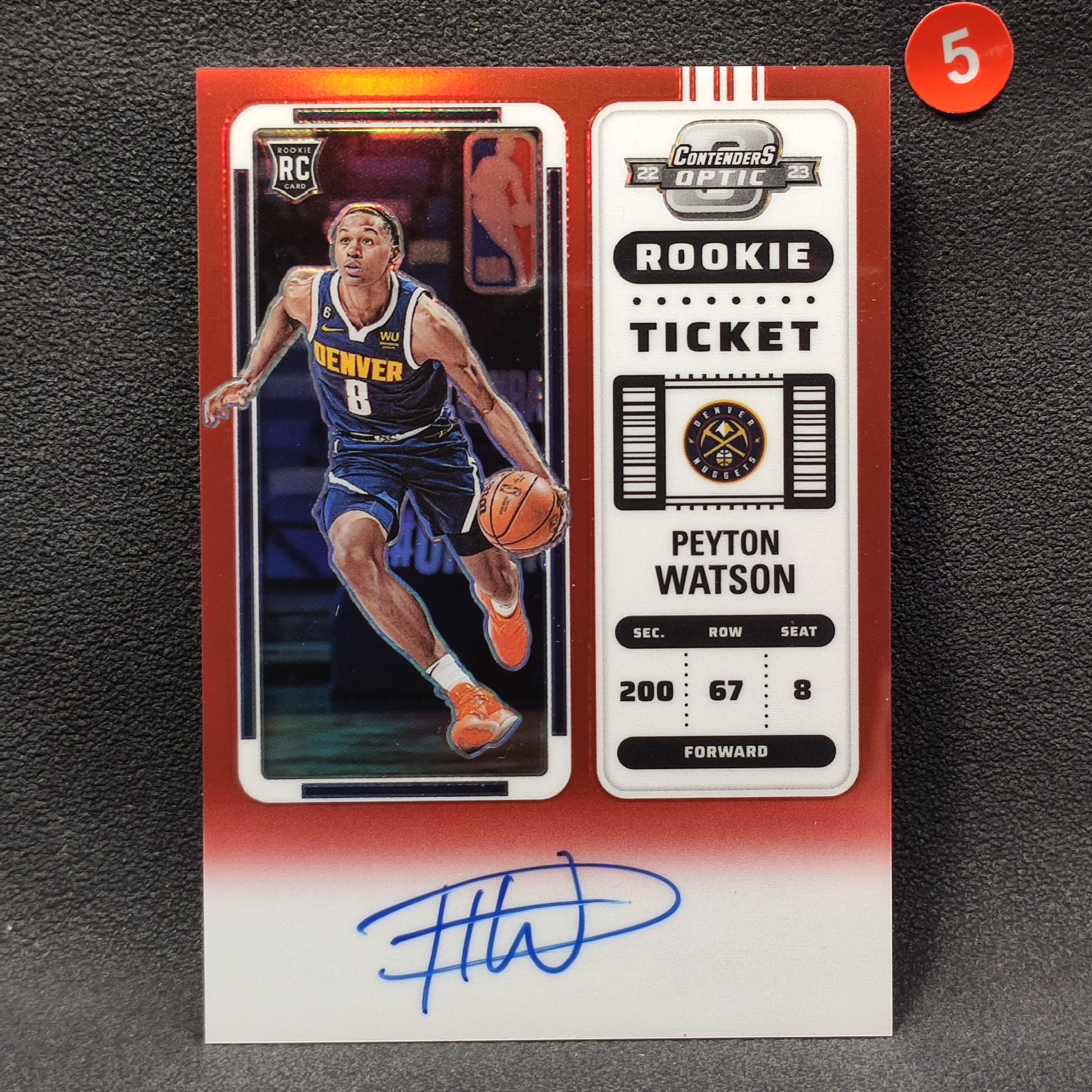 【大腿代卖预付80%】Peyton Watson 佩顿沃特森 2022-23 Contenders Optic 球票 /99编 签字 签名 卡签 红折折射 掘金队/瑕疵见详图/6262晴天/105