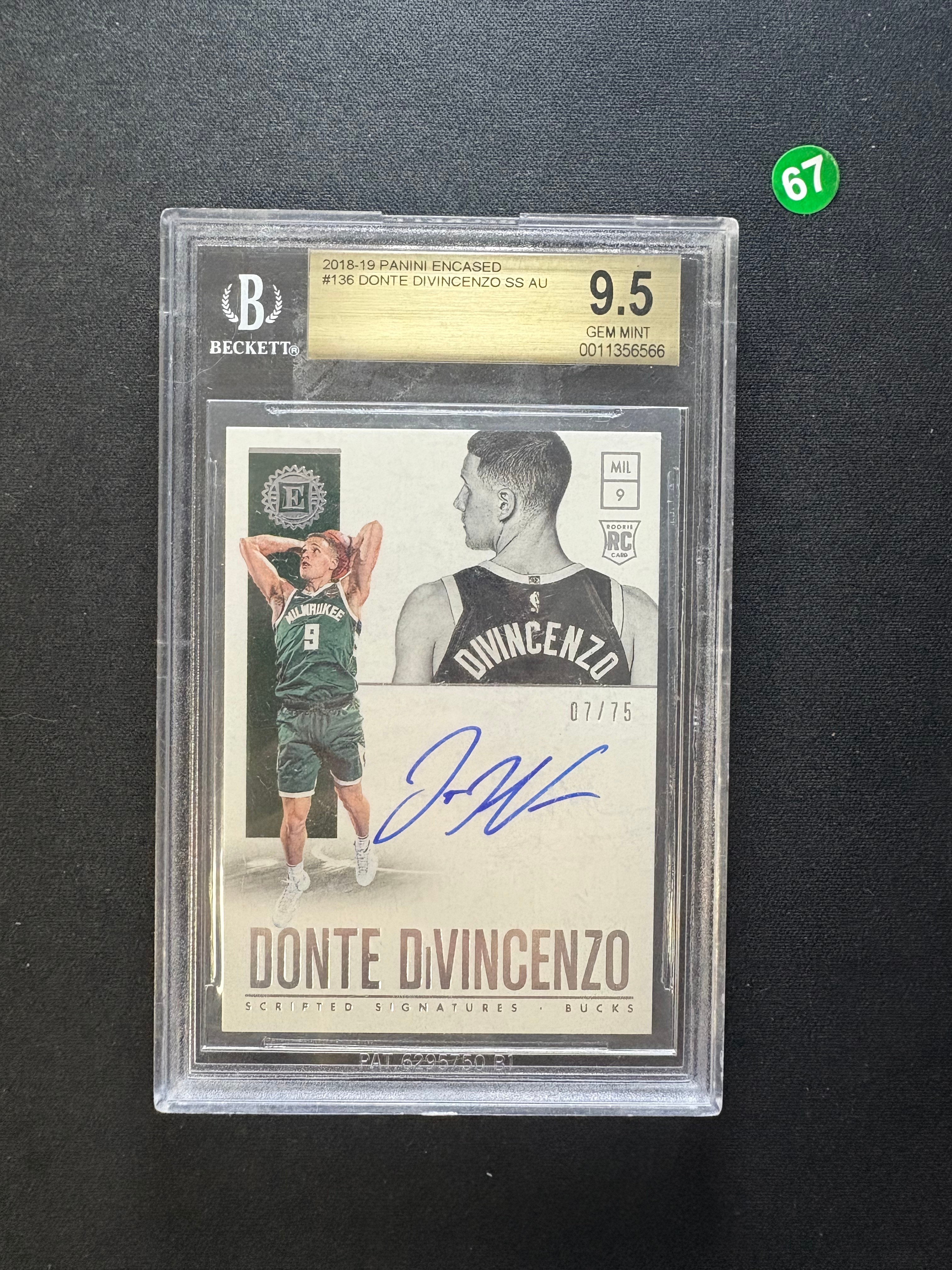 2018-19 Panini Encased Donte DiVincenzo RC 【大树代卖】唐特迪文琴佐 新秀 云端 75编 签字 卡签 雄鹿 BGS9.5 瑕疵如图(Y88C/绿67