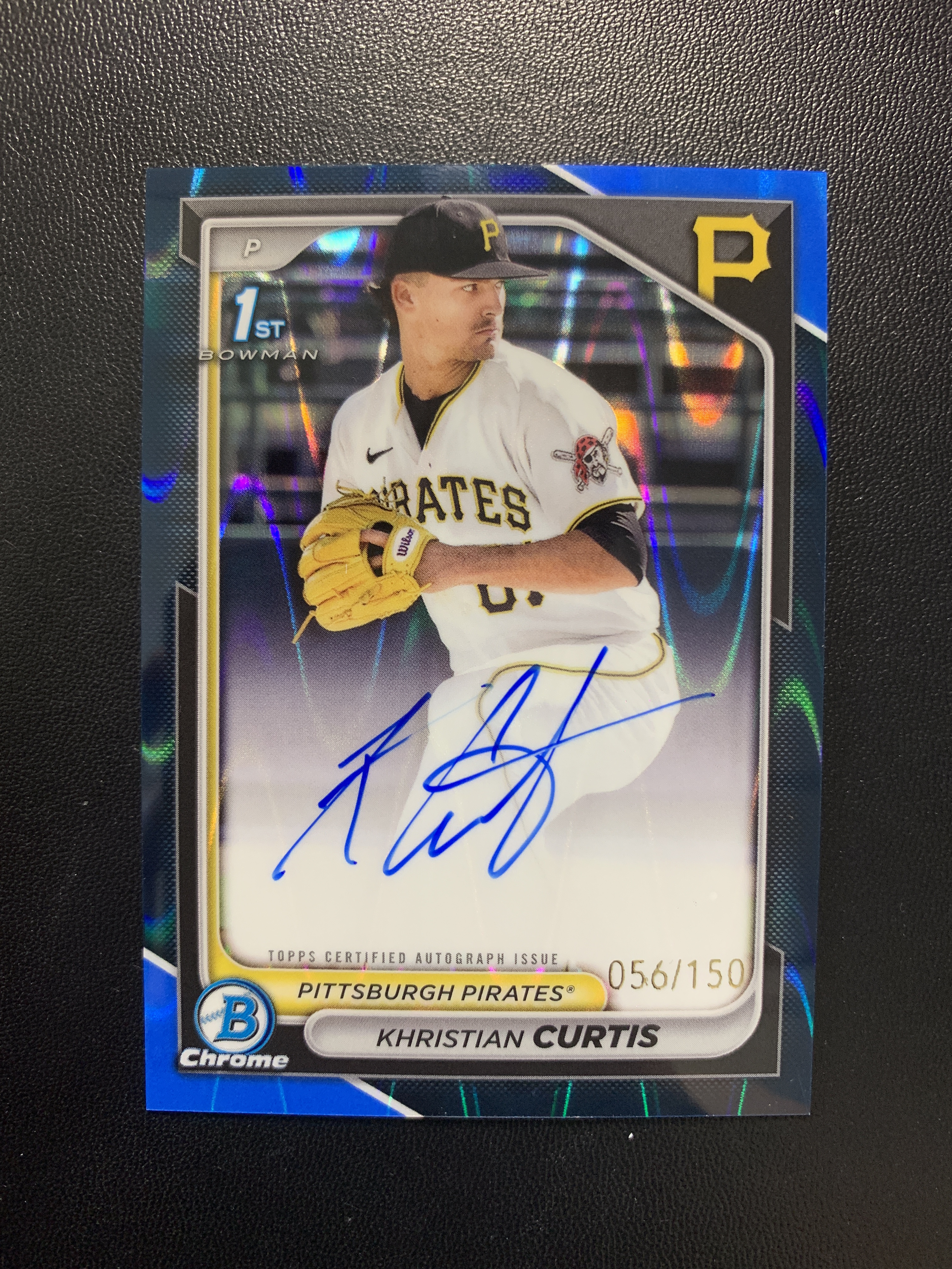 2024 Topps Bowman Chrome 棒球 Khristian Curtis 克里斯蒂安 柯蒂斯 签字 卡签 150编 匹兹堡海盗 新秀 1st 蓝折 蓝熔岩折 专收必备