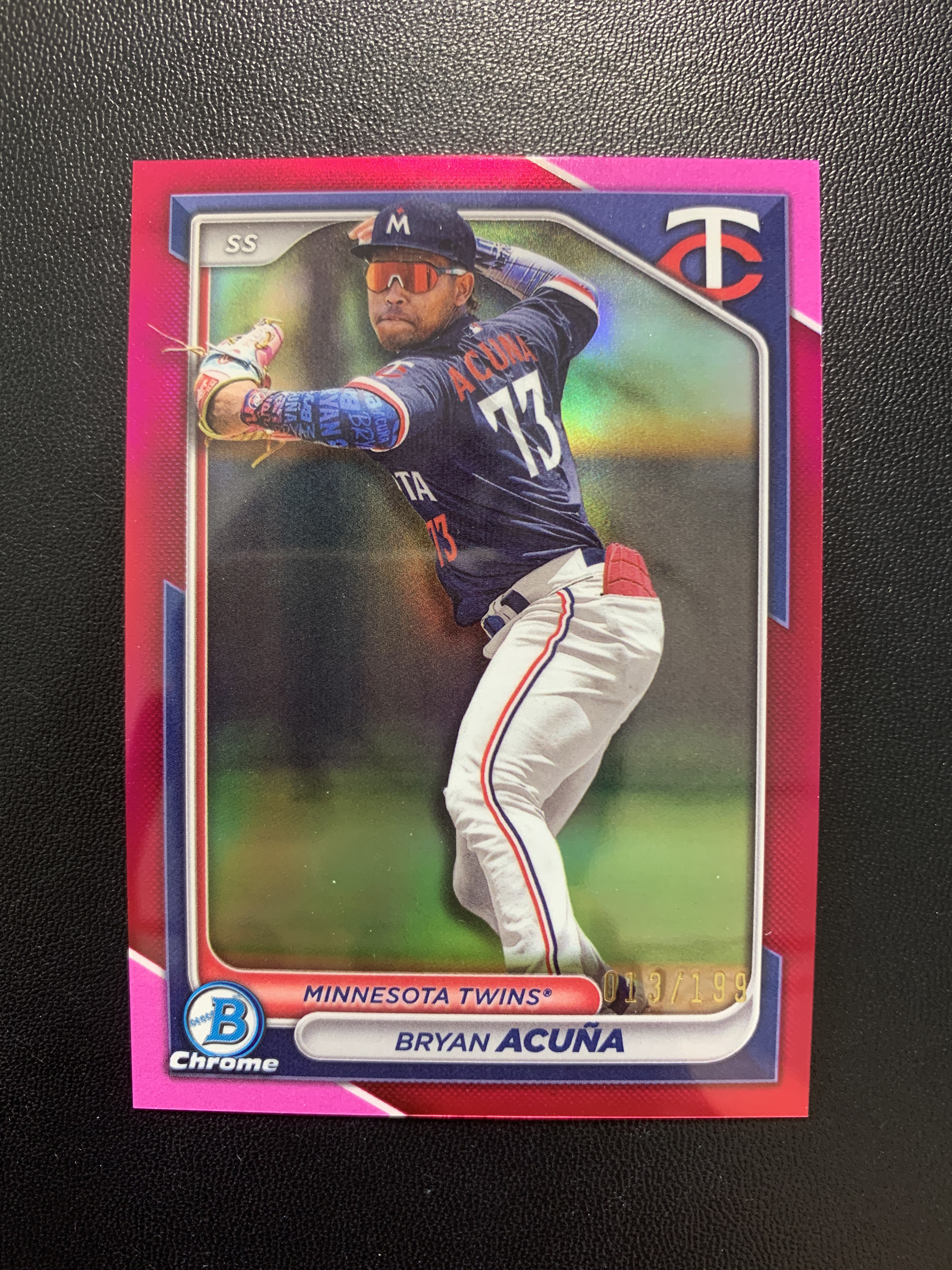 2024 Topps Bowman Chrome 棒球 Bryan Acuna 布莱恩 阿库纳 阿库尼亚 粉折 199编 明尼苏达双城 折射 专收必备