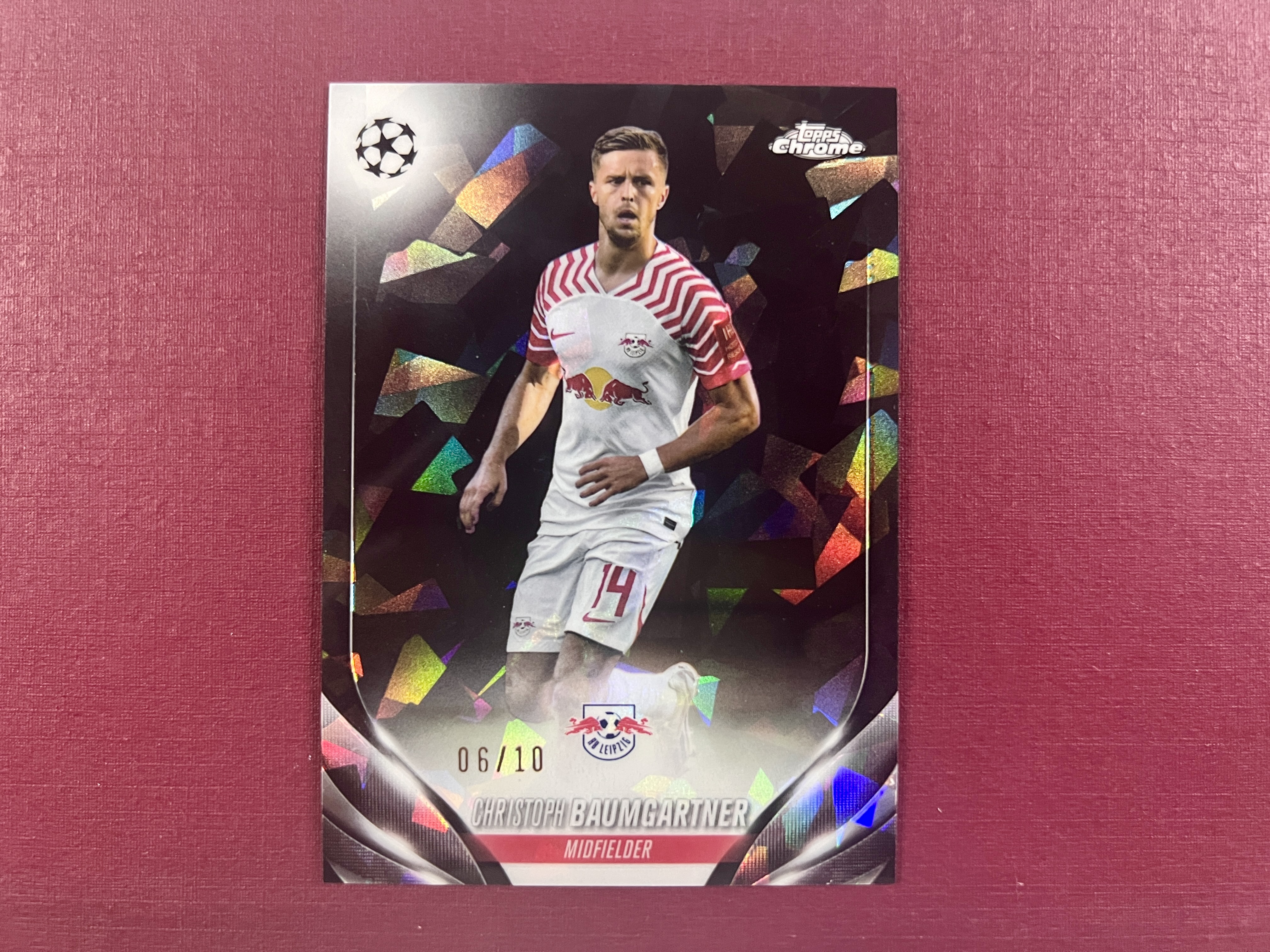 [爷叔代卖]2024 Topps Chrome Christoph Baumgartner 欧冠 莱比锡 红牛 克里斯托弗 鲍姆加特纳 10编 黑碎冰折 默认微瑕