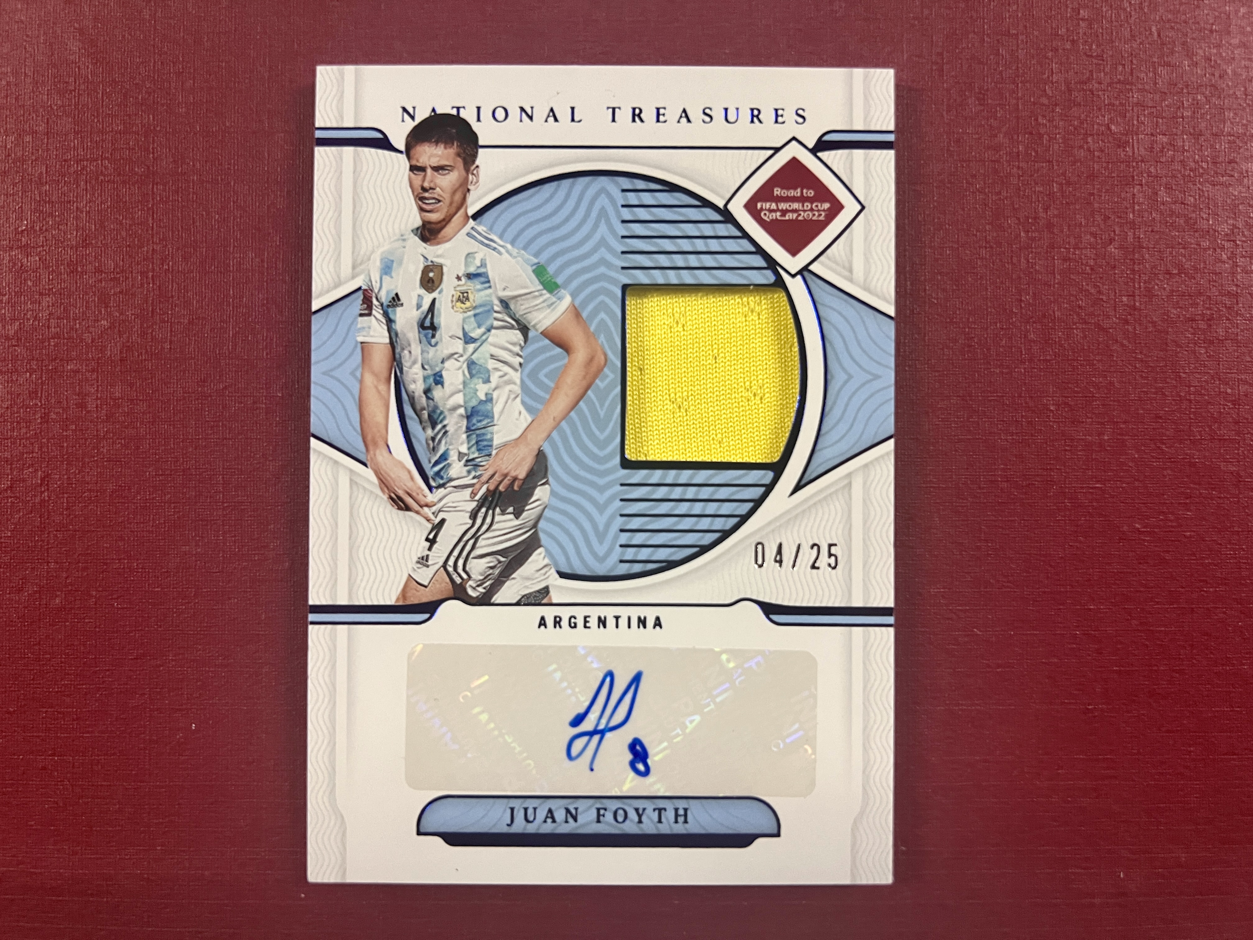 [爷叔代卖]2022 Panini National Treasures Juan Foyth 世界杯 国宝 阿根廷 福伊特 4/25编 同背 签字 物料 切割 默认微瑕