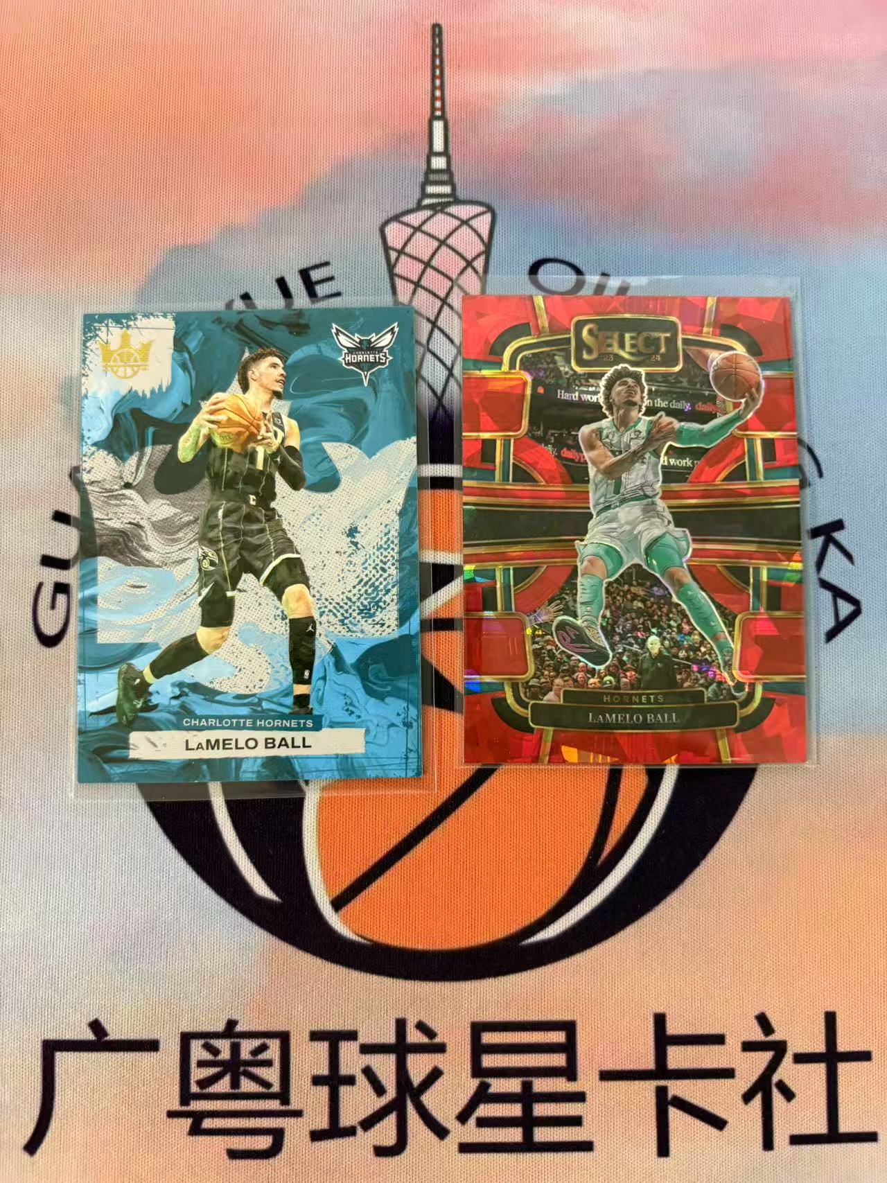 2023-24 Panini Select LaMelo Ball 【广粤】select 黄蜂 拉梅洛 鲍尔 三球 红碎冰折 折射 油画 base 2张打包 凑套专收必备(隐约