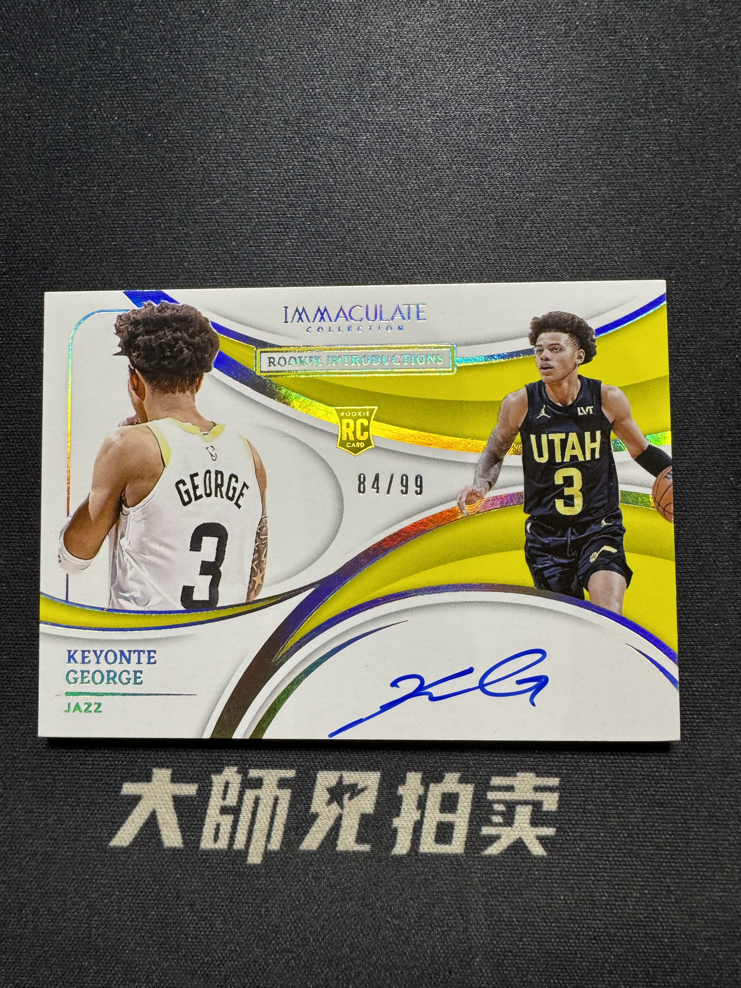 【大师兄拍卖】2023-24 panini immaculate KEYONTE GEORGE RC 爵士 乔治 猪猪侠 新秀 imm 99编 签字 卡签 新秀介绍签 瑕疵看图 -LZH-
