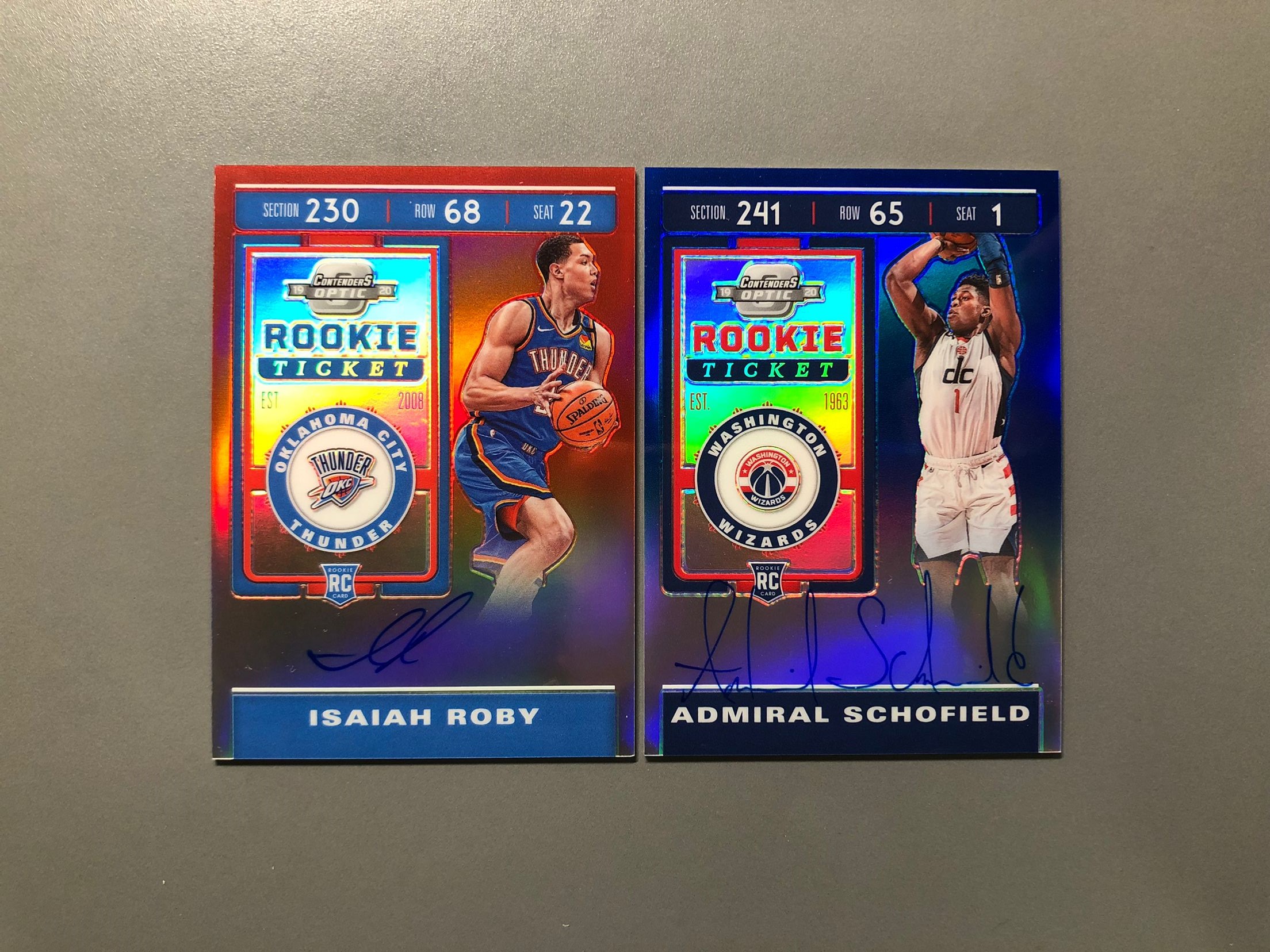 2019-20 Panini Contenders Optic Isaiah Roby RC 以赛亚·罗比 红折 149编 斯科菲尔德 蓝折 99编 新秀 RC 签字 卡签 新秀签 2张lot GMD