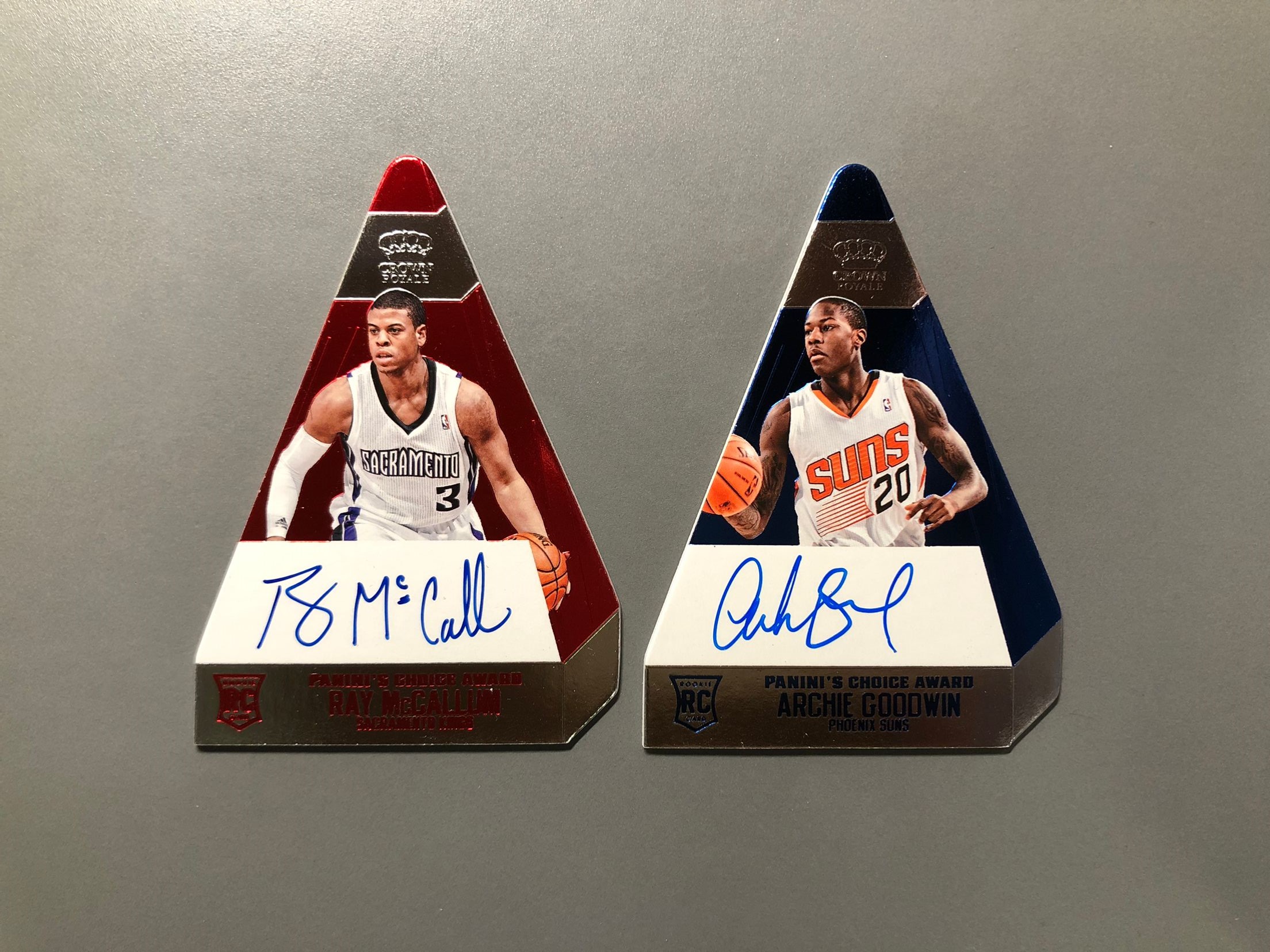 2013-14 Panini Preferred Ray McCallum RC 雷·麦卡勒姆 红折 99编 阿奇·古德温 蓝折 49编 新秀 RC 签字 卡签 新秀签 异形 切割 2张lot GMD