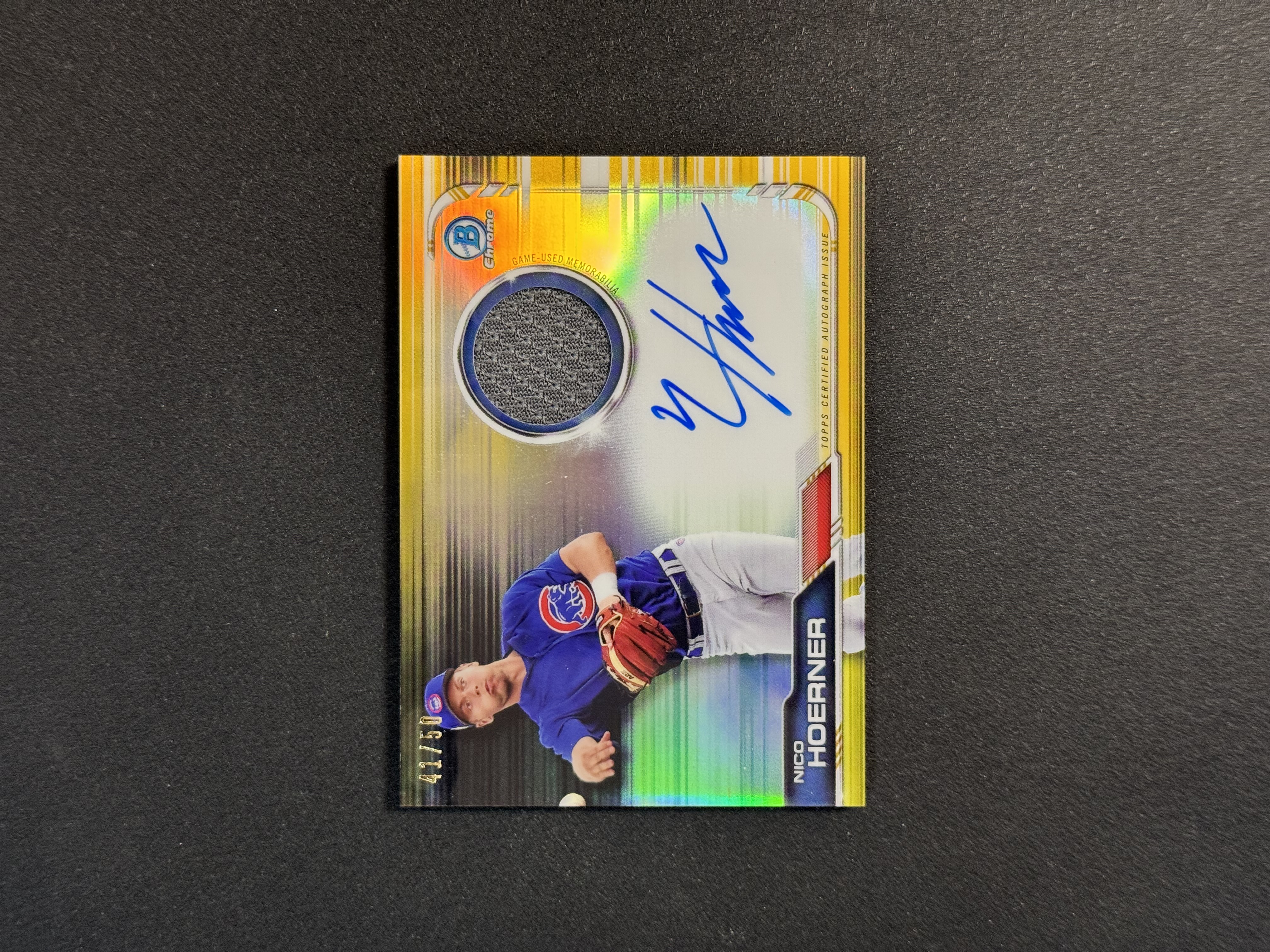 2019 Topps Bowman Chrome Nico Hoerner 尼科 霍纳 球衣物料签字 卡签 金折 /50编【零壹小卡】sl