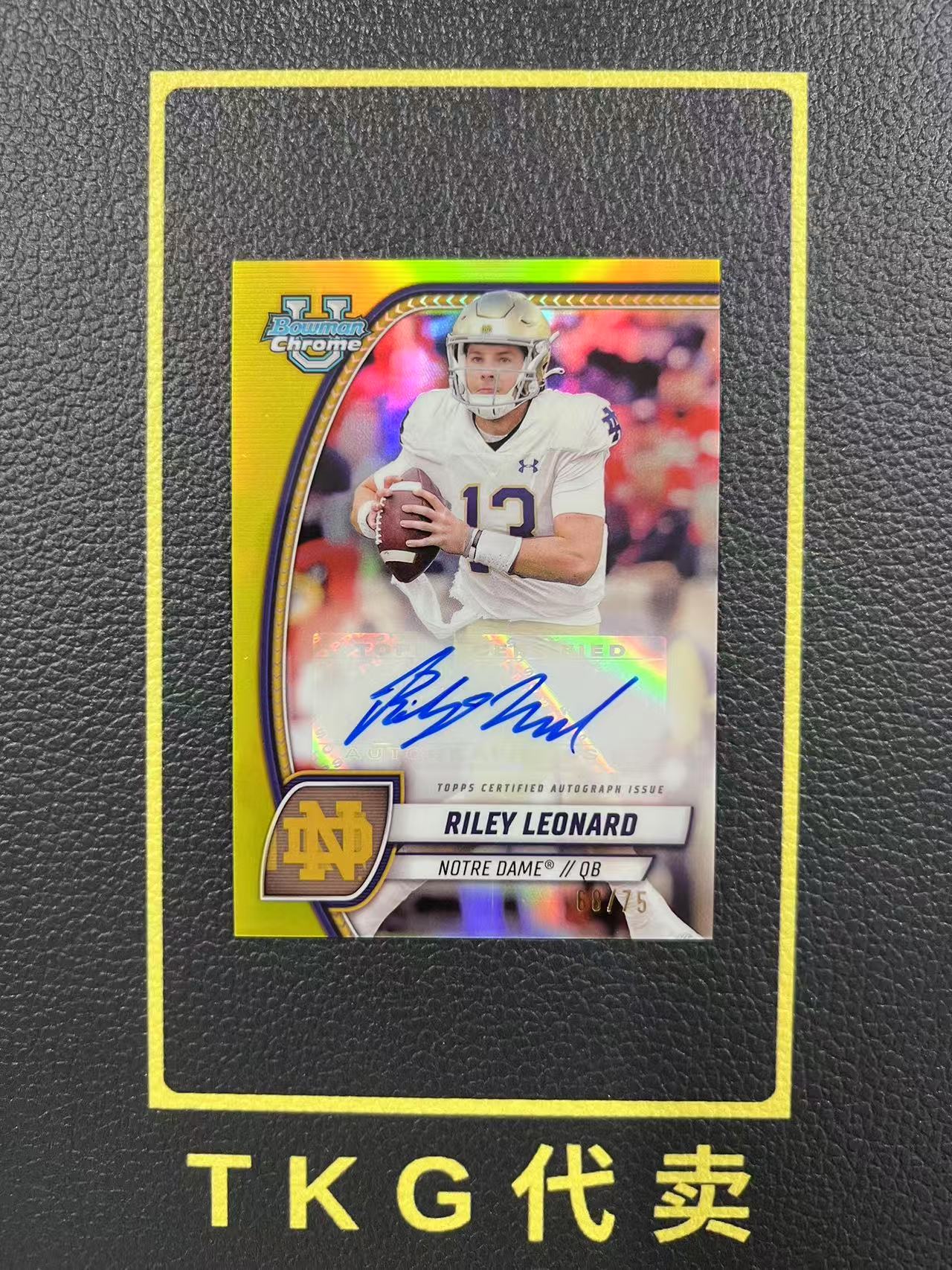 2024 Topps Bowman Riley Leonard 【TKG代卖】2046 橄榄球 莱利 伦纳德 大学 68/75编 折射 金折 贴签 签字 卡品如图