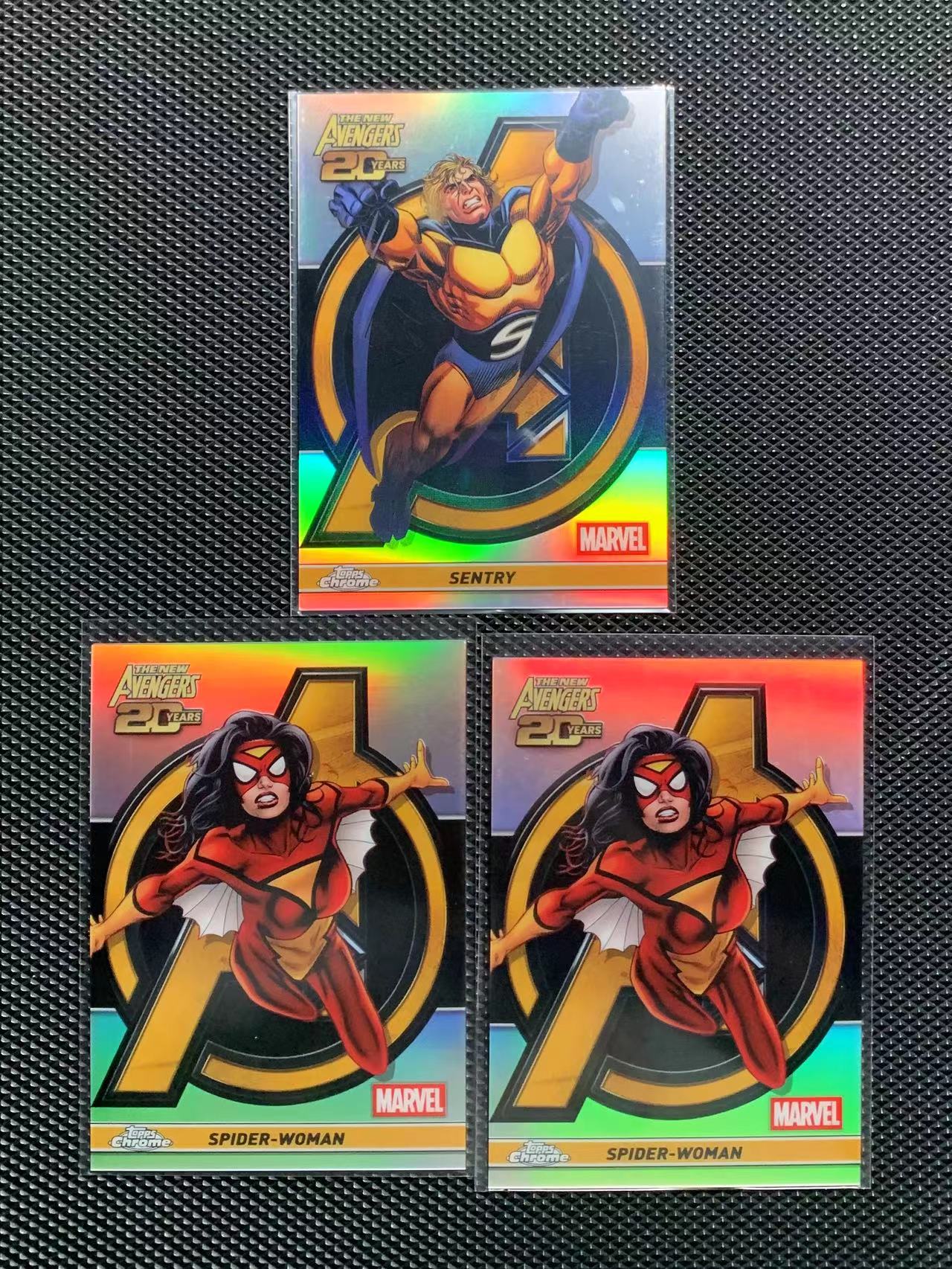 2025 Topps Chrome Marvel TC漫威 复仇者联盟20周年纪念 Sentry 哨兵 Spider-Woman 蜘蛛女 特卡 银折 3张打包lot 不保卡品