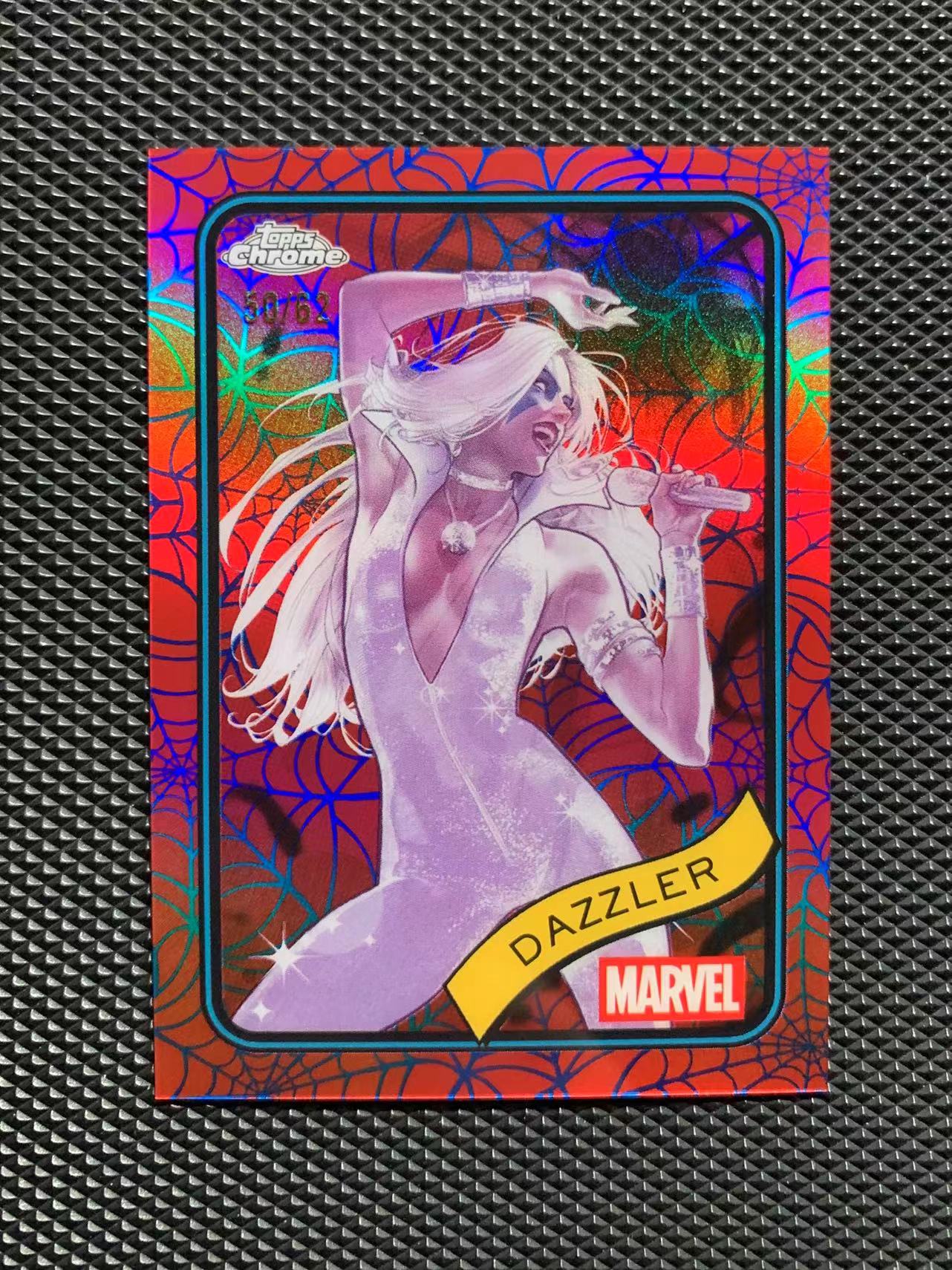 2025 Marvel Topps Chrome DAZZLER TC漫威 炫音 /62编 红蓝蜘蛛网折 折射 带编base 品见大图
