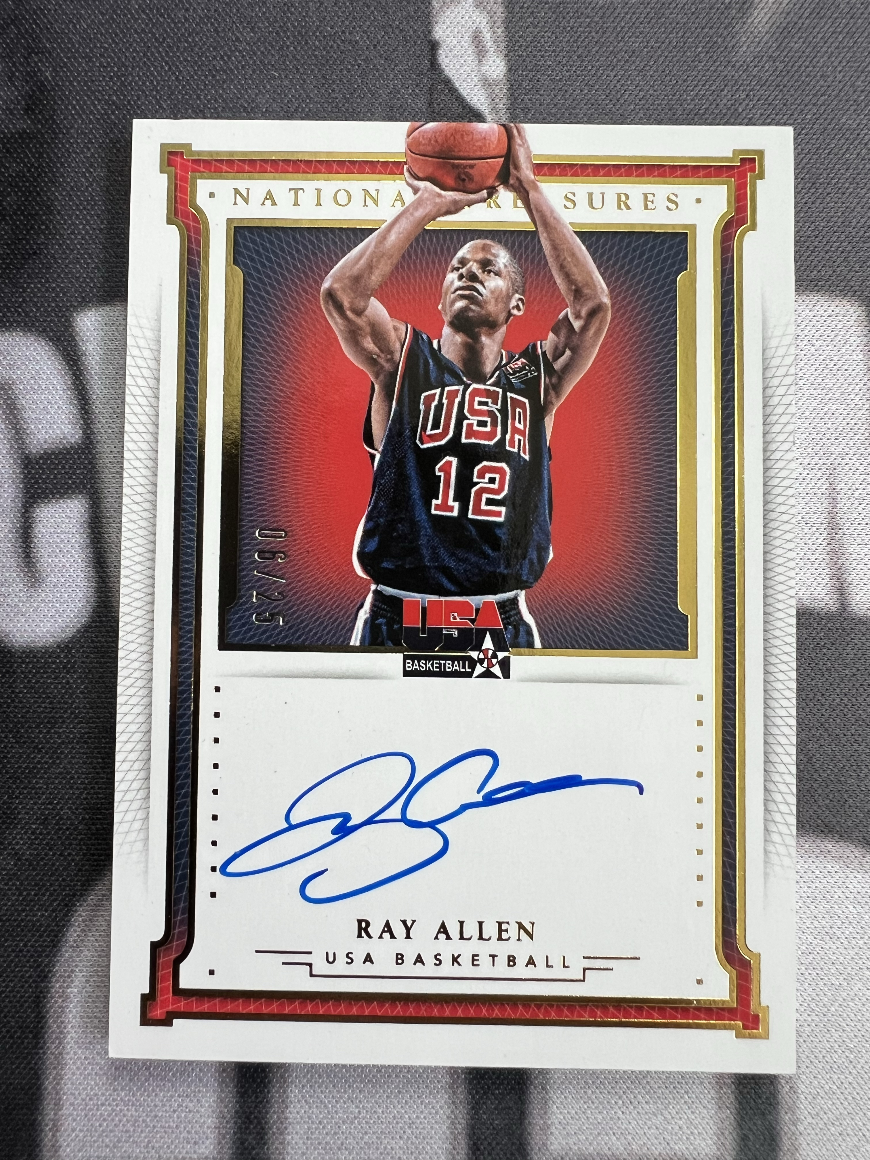2015 Panini National Treasures Ray Allen 国宝 美国队 雷阿伦 签字 卡签 25编 无平行 美国队选图超帅 ssp 墨迹湛蓝 加内特詹姆斯韦德波什队友 微瑕如图