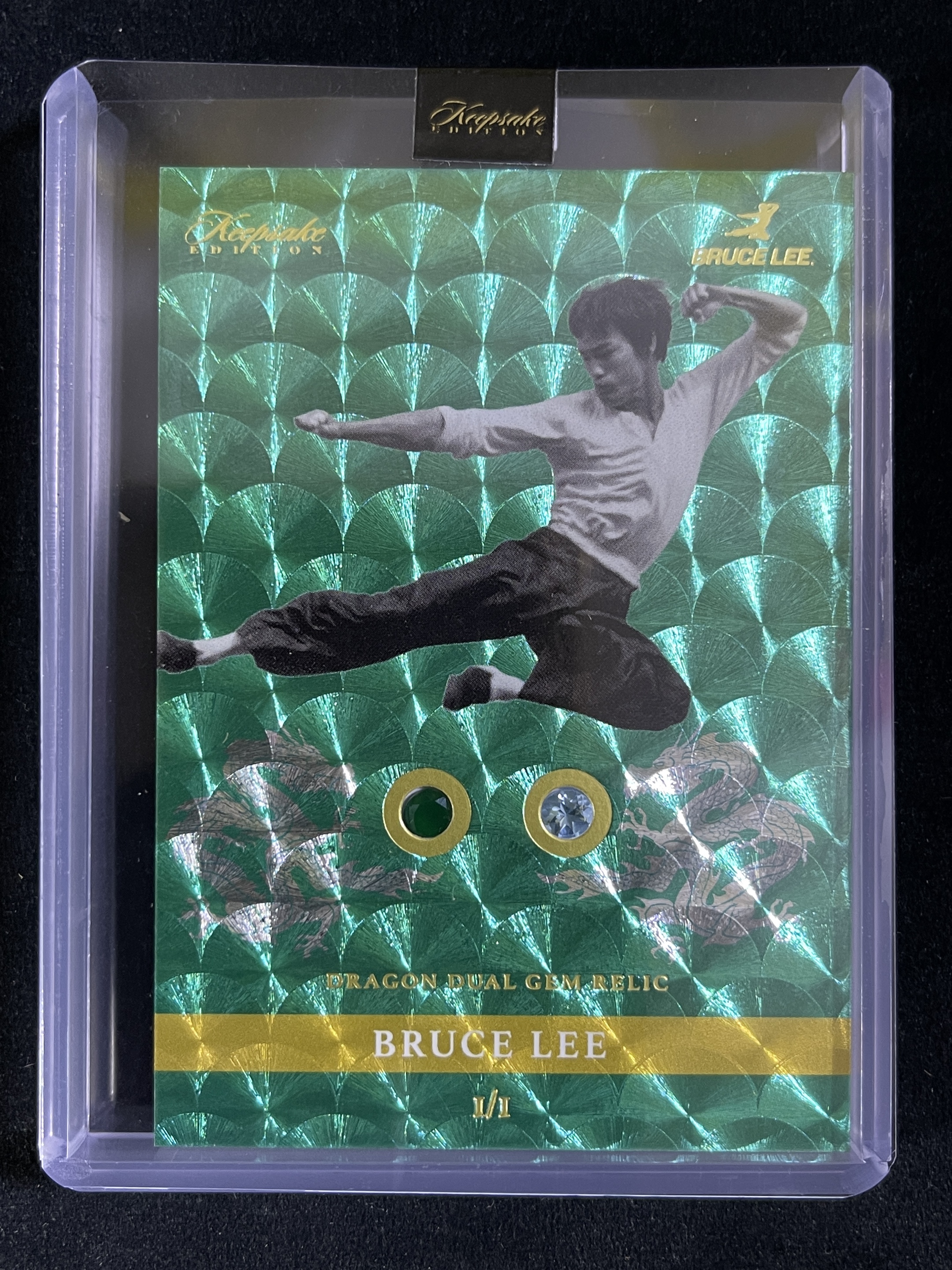 【Lucky幸运壹编壹代拍-WS】2024 Keepsake Bruce Lee 李小龙 50周年 李小龙 1of1 1编1 1/1编折射绿蓝双钻实物 功夫巨星 稀有 原封夹