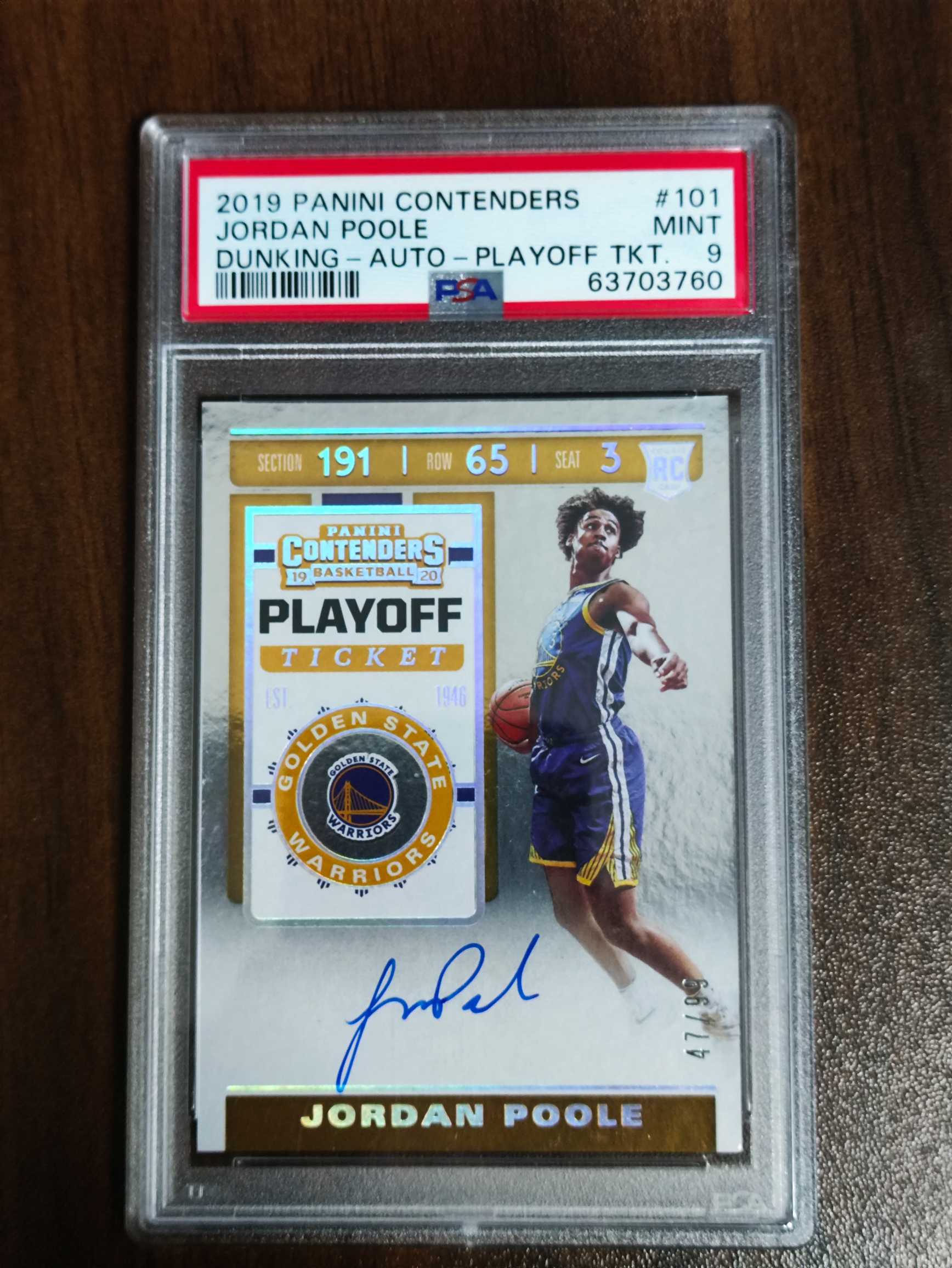 2019-20 Panini Contenders Jordan Poole RC 乔丹 普尔 普洱 球票 psa9 签字 卡签 99编 新秀 银折库里 汤普森队友 NBA 篮球 勇士队 奇才 N
