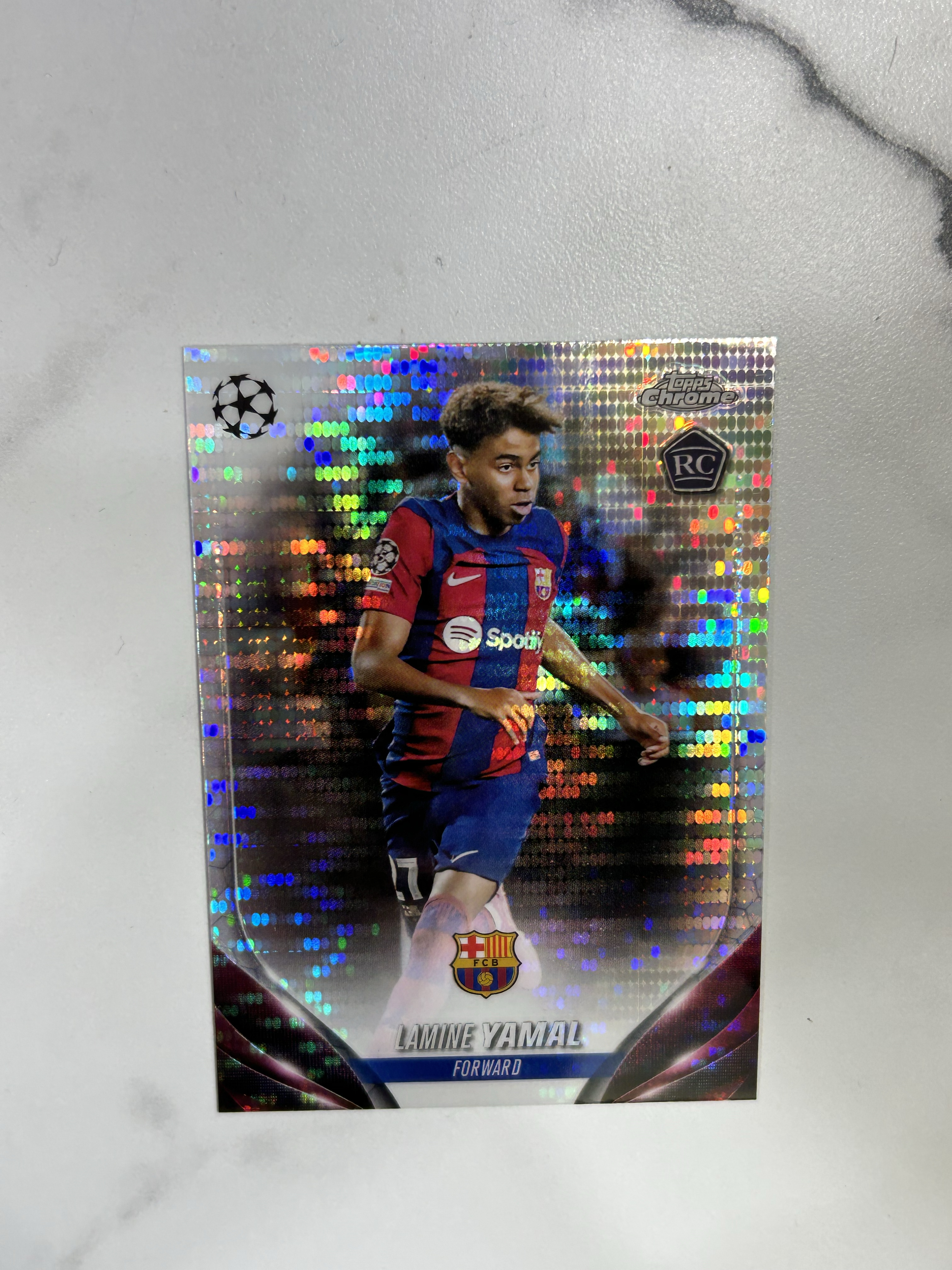 2023-24 Topps Chrome Lamine Yamal RC 亚马尔新秀Rookie银脉冲折Pulsar #64 巴塞罗那 西班牙 金童奖冲击金球 卡品如图 欧冠折射