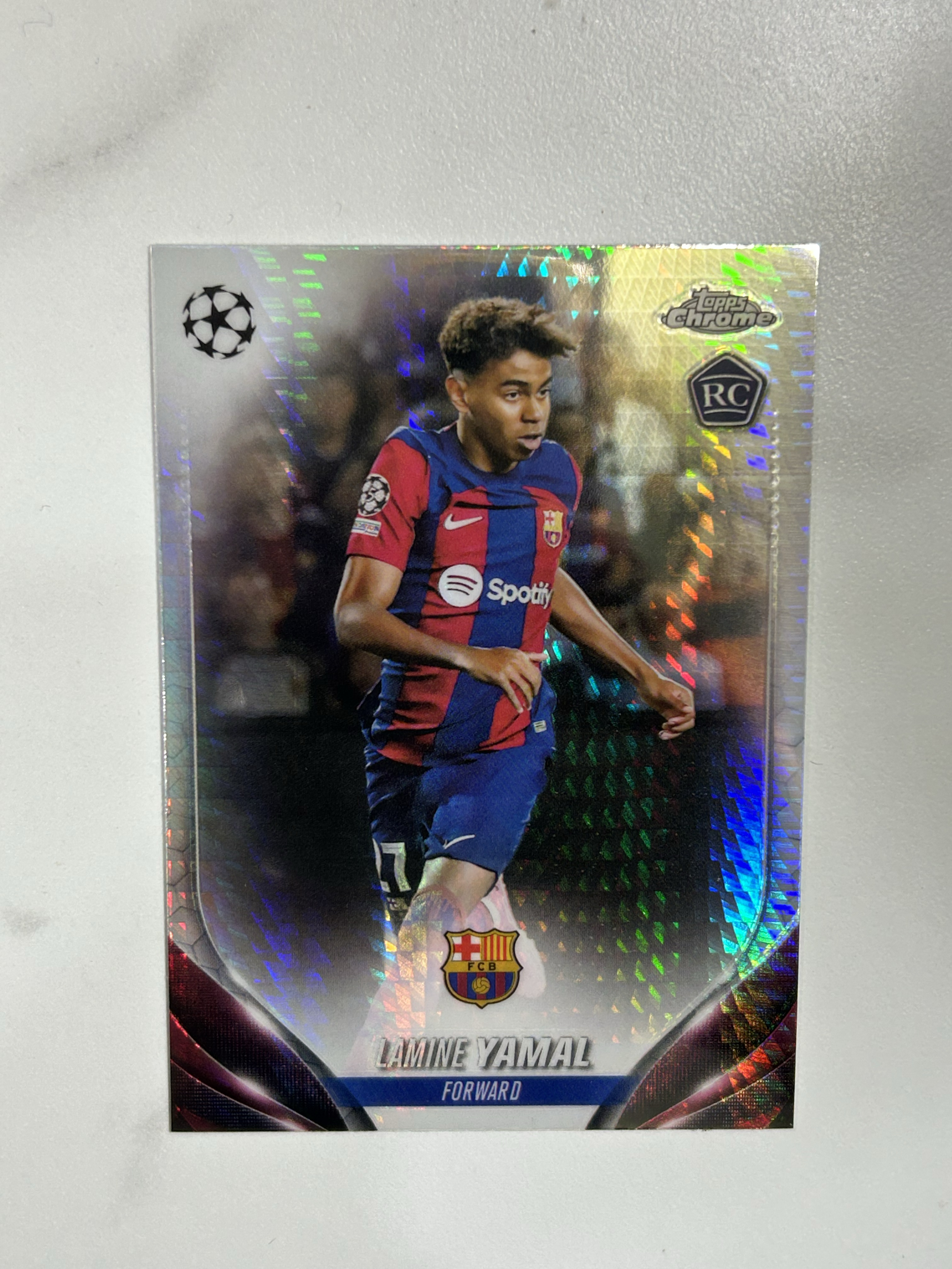 2023-24 Topps Chrome Lamine Yamal RC 亚马尔新秀Rookie银Hyper折 #64 巴塞罗那 西班牙 金童奖冲击金球 卡品如图 欧冠折射 第一张