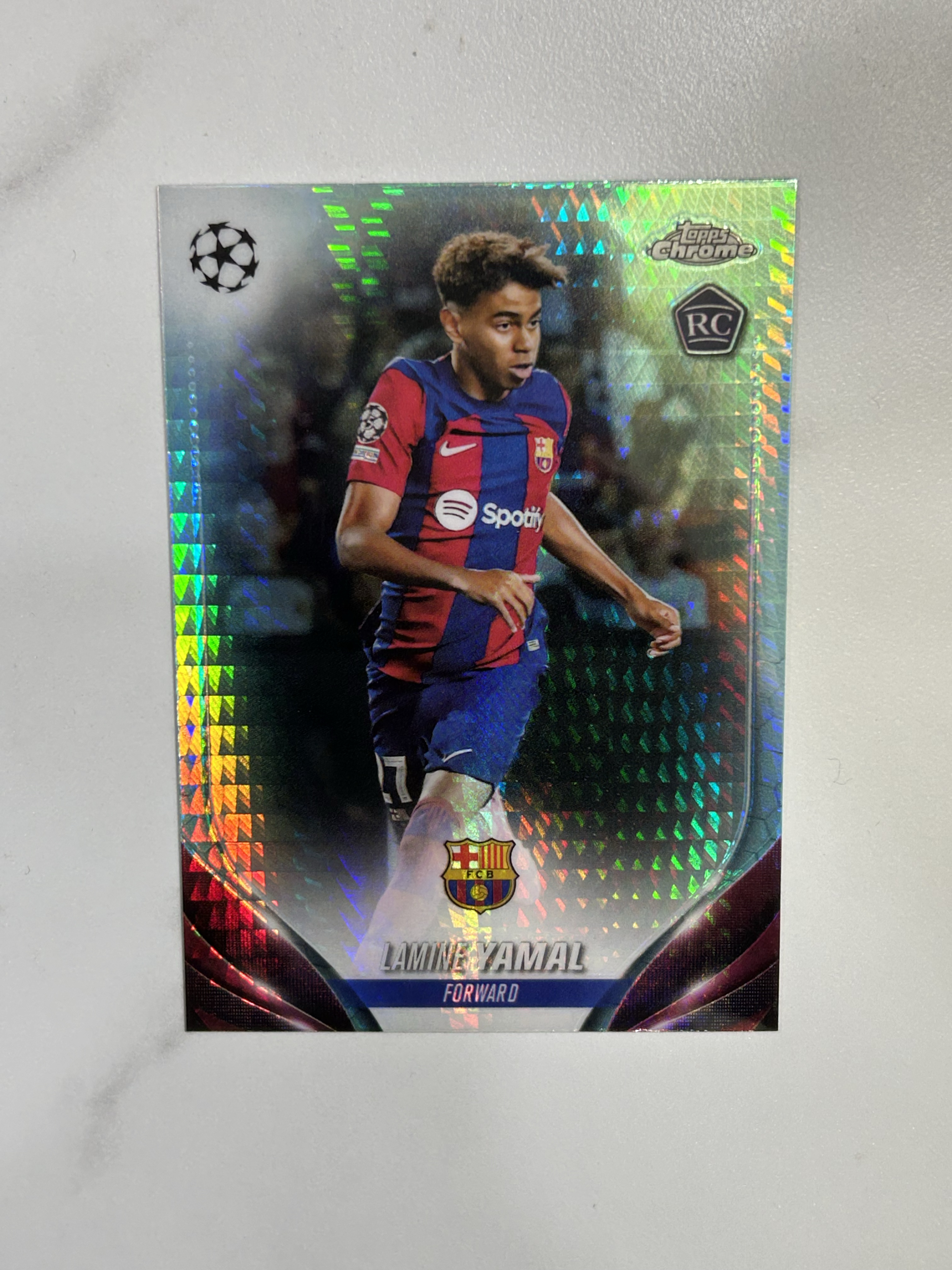 2023-24 Topps Chrome Lamine Yamal RC 亚马尔新秀Rookie青Hyper折 #64 巴塞罗那 西班牙 金童奖冲击金球 卡品如图 欧冠折射 大比例