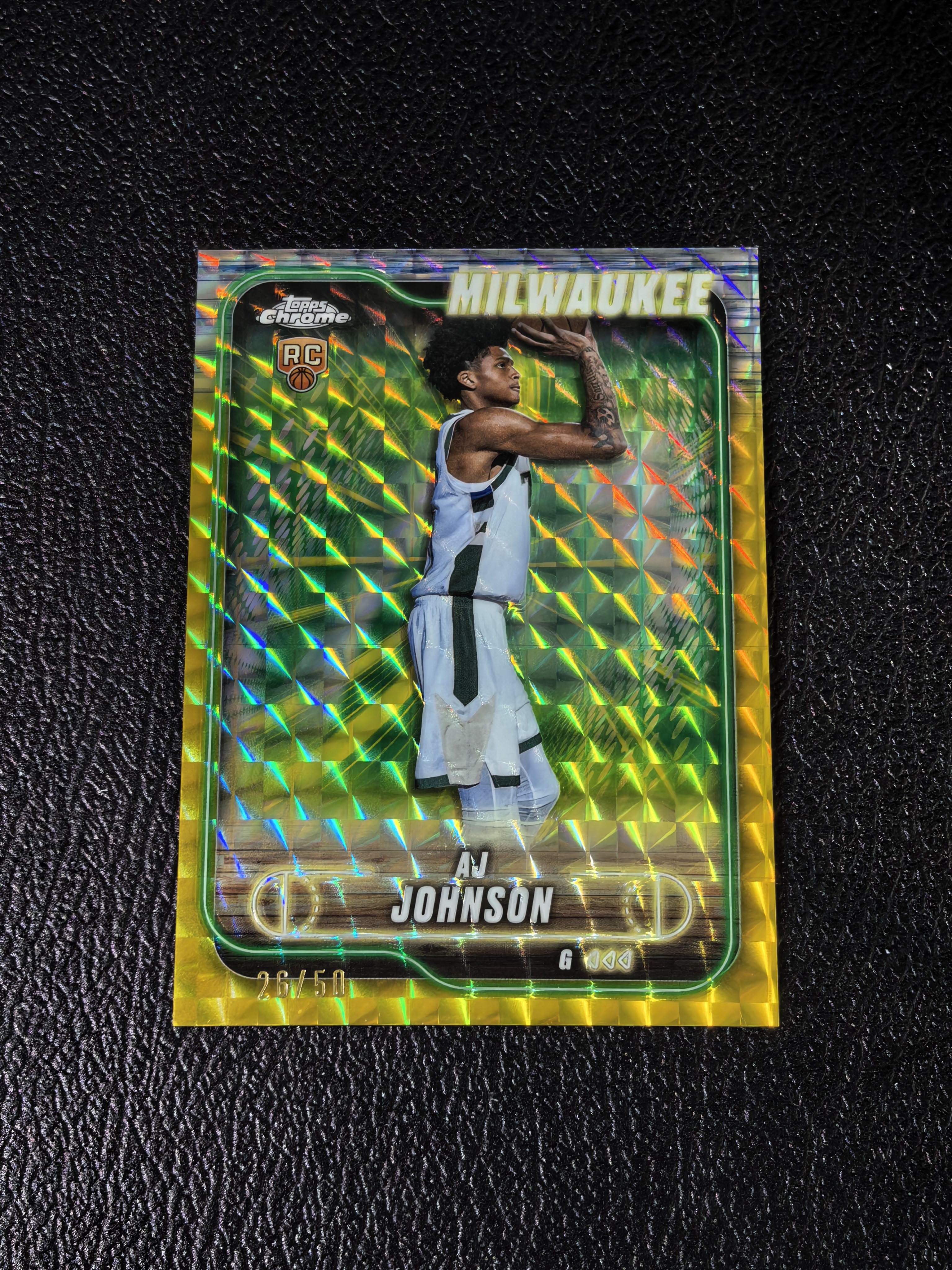 2024-25 Topps Chrome AJ Johnson RC TC 新秀 金格子折 /50编 AJ 约翰逊 潜力新星 未来可期 折射 金折 雄鹿 专收 凑套 卡品如图