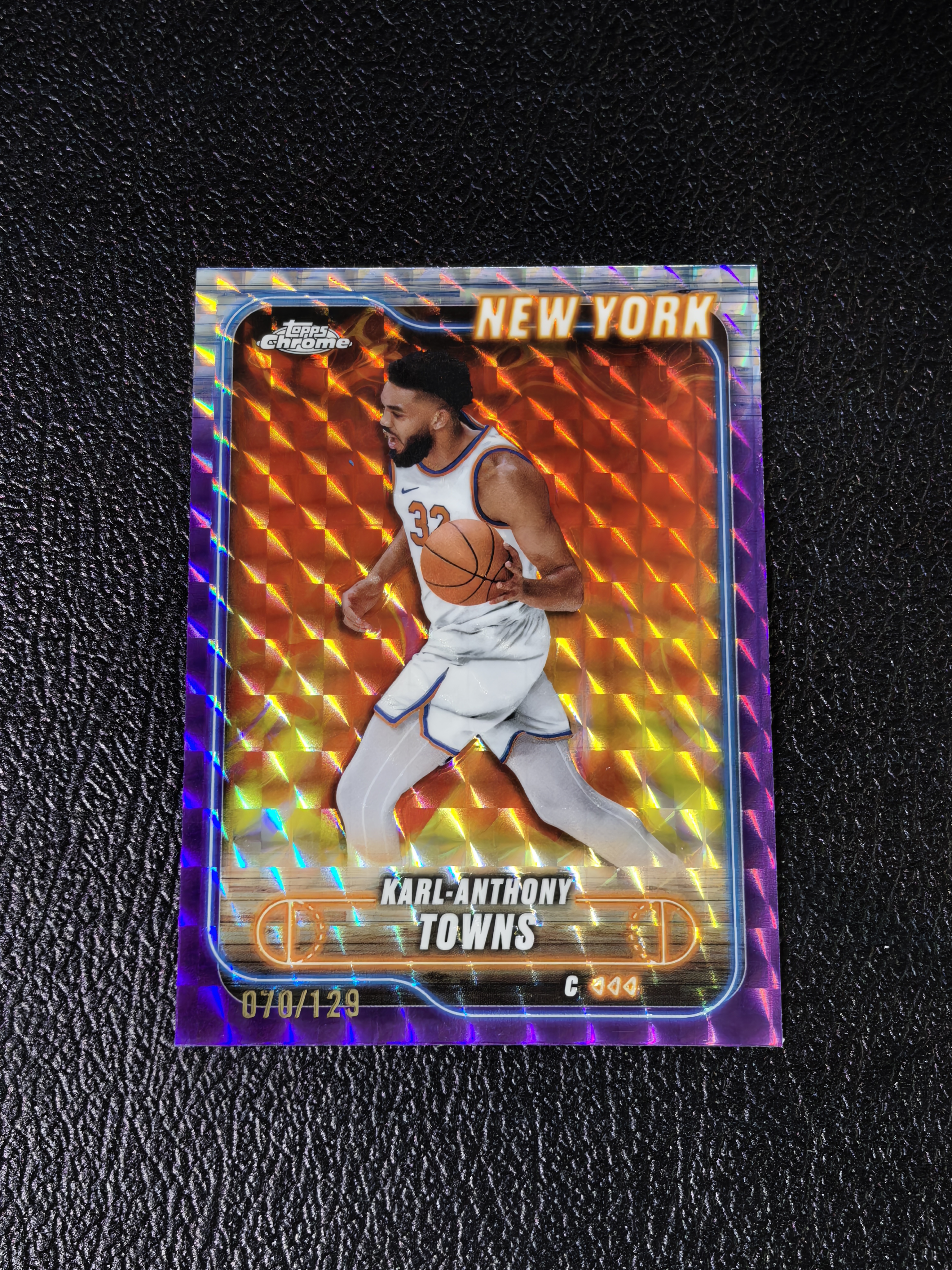 2024-25 Topps Chrome Karl Anthony Towns TC 紫格子折 /129编 卡尔 安东尼 唐斯 软糖 折射 带编 紫折 尼克斯 专收 凑套 卡品如图