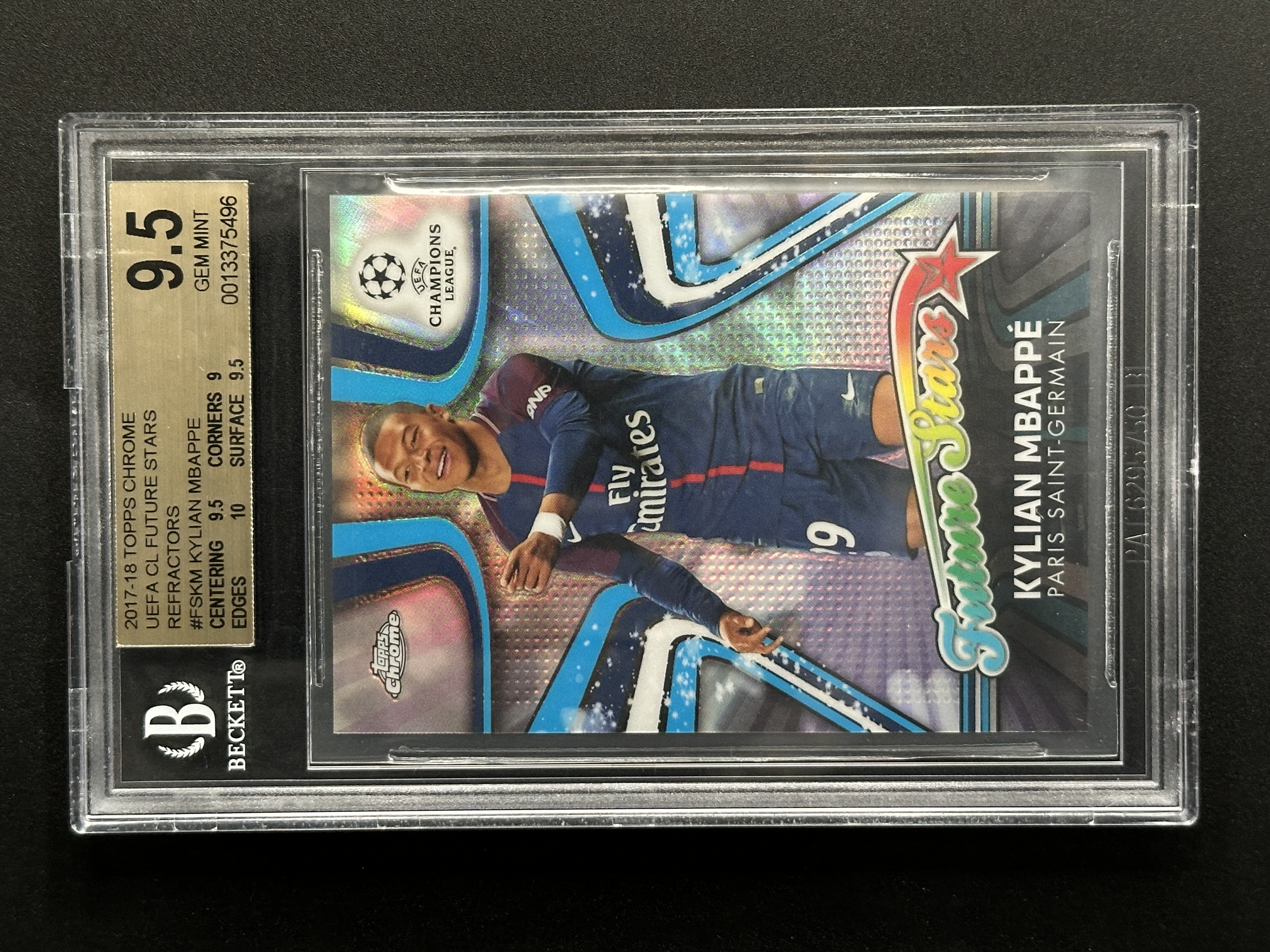 2017-18 Topps Chrome Kylian Mbappe 欧冠Chrome 元年 巴黎 姆巴佩 RC新秀 银折 Future Stars 未来之星特卡 评级卡 BGS 9.5 金标