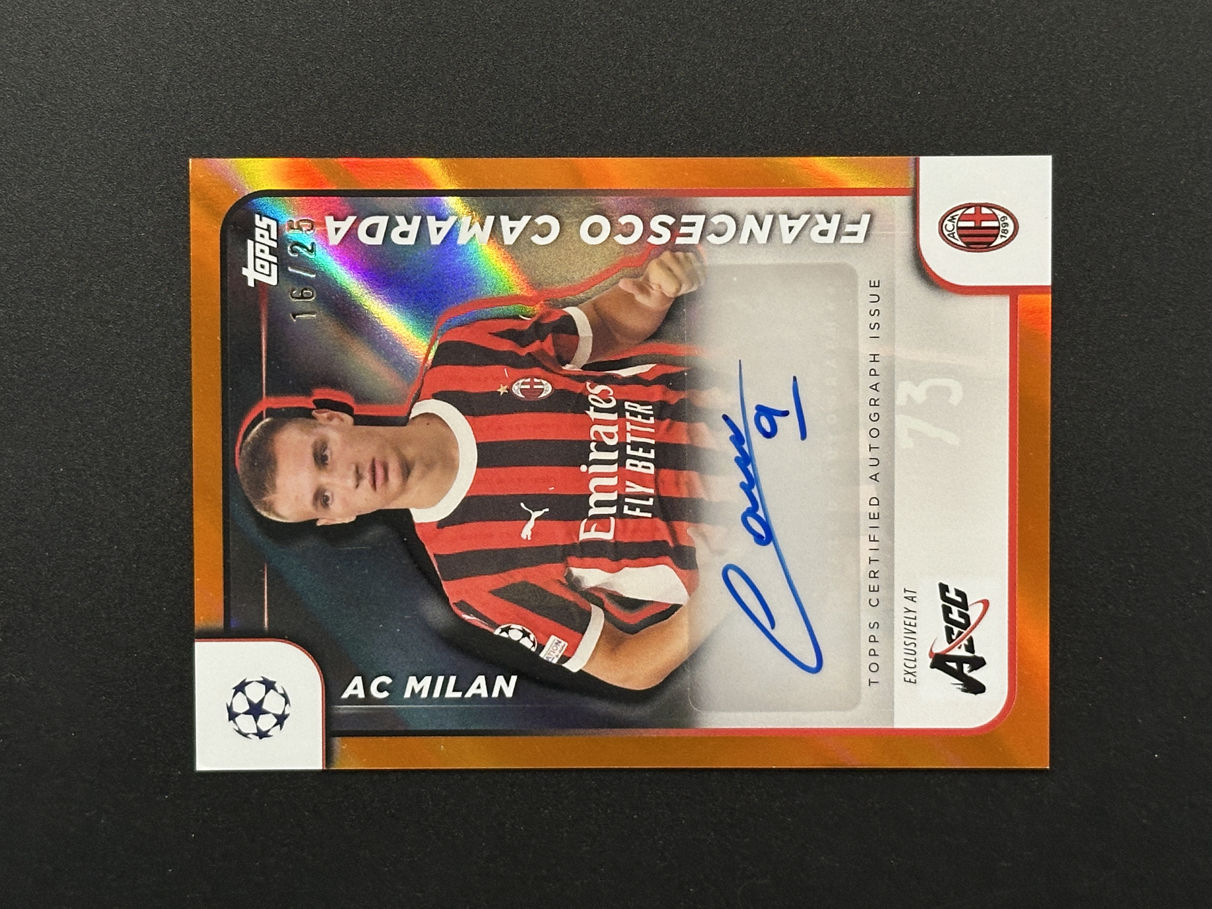 2024 Topps ASCC Francesco Camarda ASCC展会包 澳门卡展展会包 AC米兰 弗朗切斯科 卡马尔达 橙折 16/25编 签字 贴签 欧冠 新秀年 细节看图