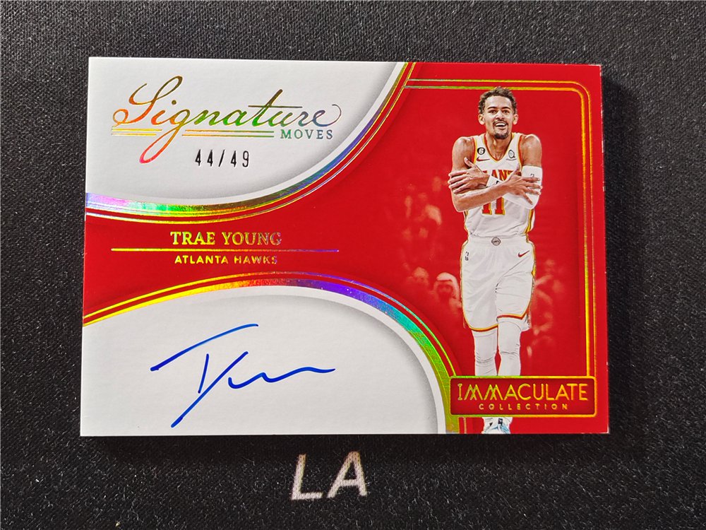 【LA拍卖精品】2023-24 Panini Immaculate Trae Young IMM 老鹰 特雷杨 Signature Moves 招牌动作 签字卡签 限量49编 专收 凑套必备 微瑕如图!VLA04