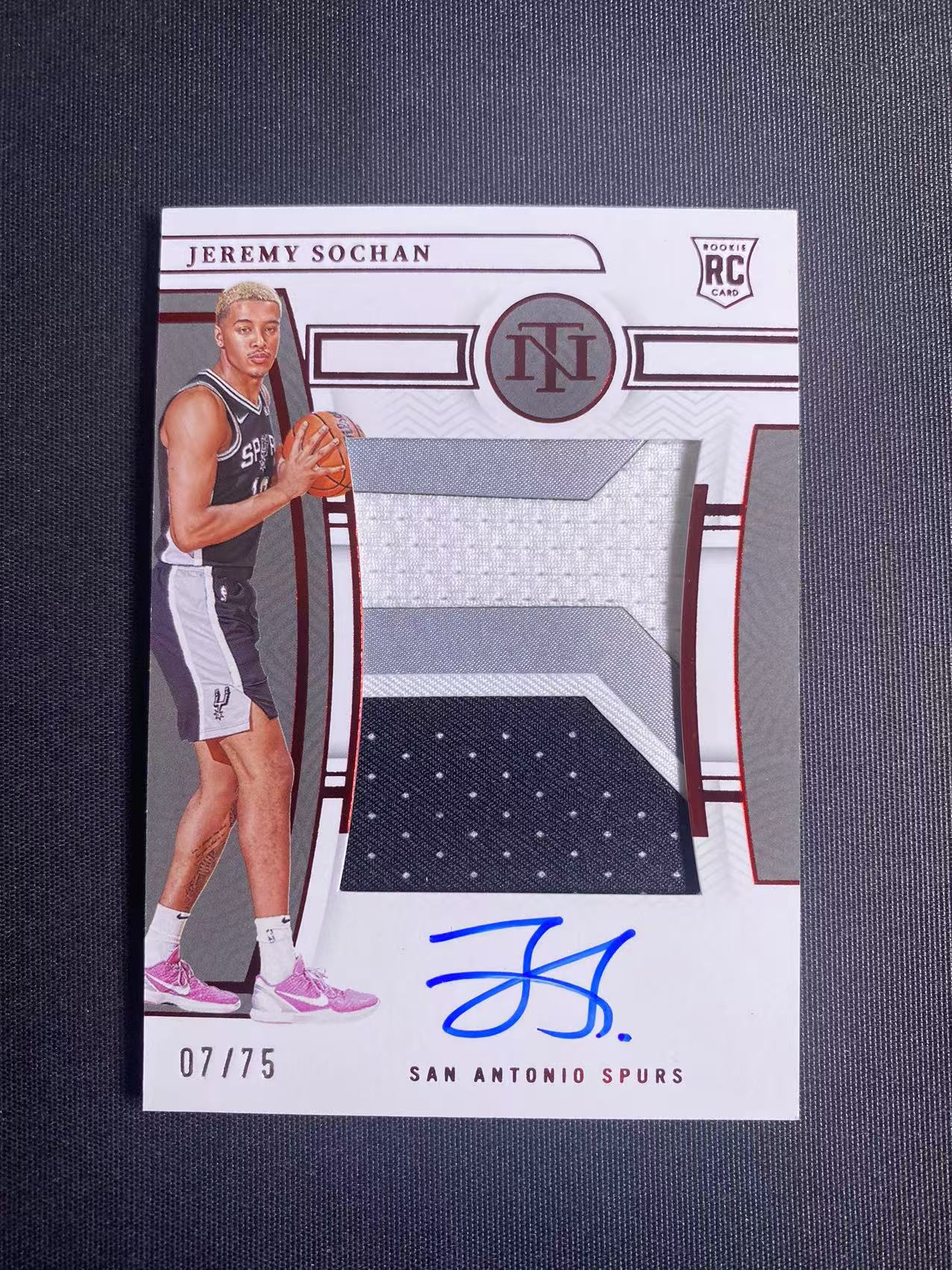 2022-23 【六六代卖 预付快速回款】 National Treasures Jeremy Sochan RC 索汉 马刺 75编 RPA 红平行 新秀 卡签签字 球衣Patch 微瑕如图(老居)