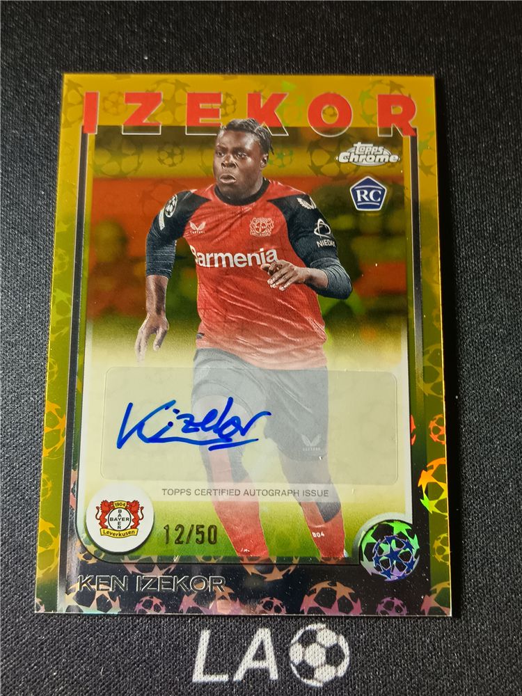 【LA足球】2025 Topps Chrome KEN IZEKOR 欧冠 Mega盒 球折独占盒 新秀Rc 勒沃库森 肯 伊泽科尔 德国 金球折 签字卡 50编 微瑕如图 BGC002