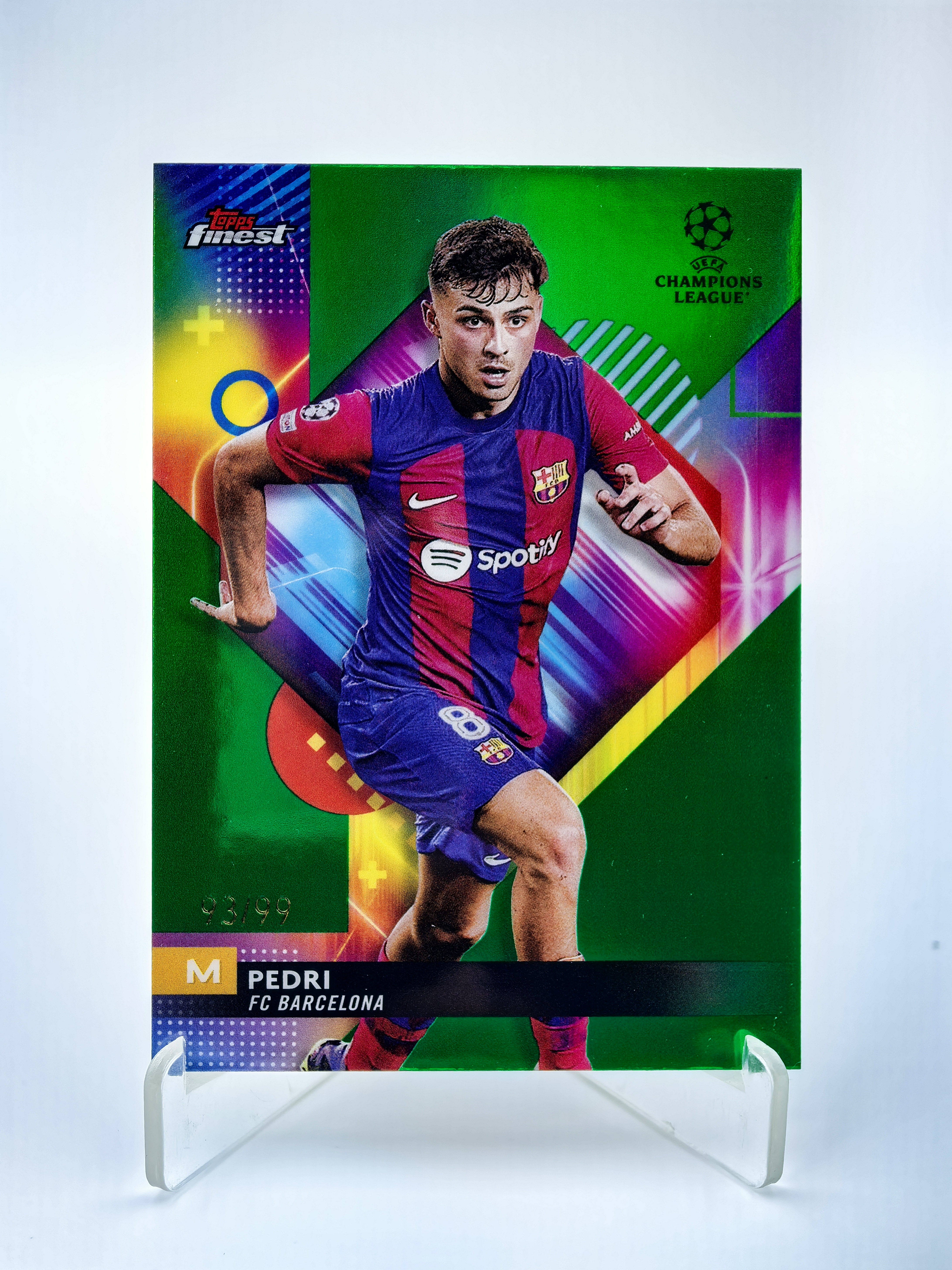 2024 Topps Finest Pedri 欧冠 欧战 UEFA 巴萨 巴塞罗那 西班牙 中场 佩德里 佩刀 93/99编 绿折 折射 收藏必备 卡品如图 LZD