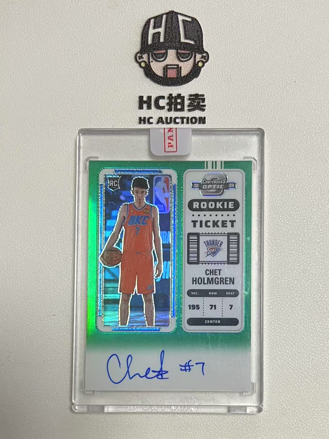 2022-23 Panini Contenders Optic Chet Holmgren RC 【HC拍卖】球票OP 切特 霍姆格伦 新秀 签字 卡签 绿折 折射 75编 原封砖 总冠军 状态爆炸